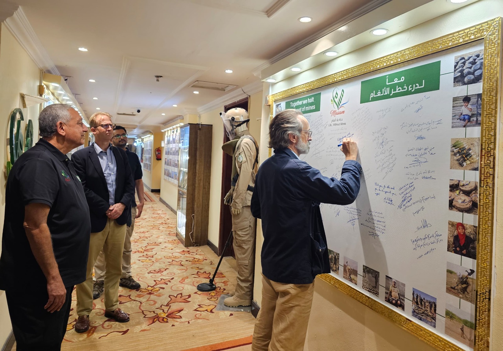 وأكد عزم مشروع «مسام» مواصلة مساهمته في كل ما من شأنه تعزيز برامج نزع  الألغام  العاملة في الأراضي اليمنية، وتقديم كافة الخدمات الاستشارية واللوجستية في هذا الشأن. وقد رافق مدير عام مشروع «مسام» خلال الزيارة عدد من قيادات المشروع.