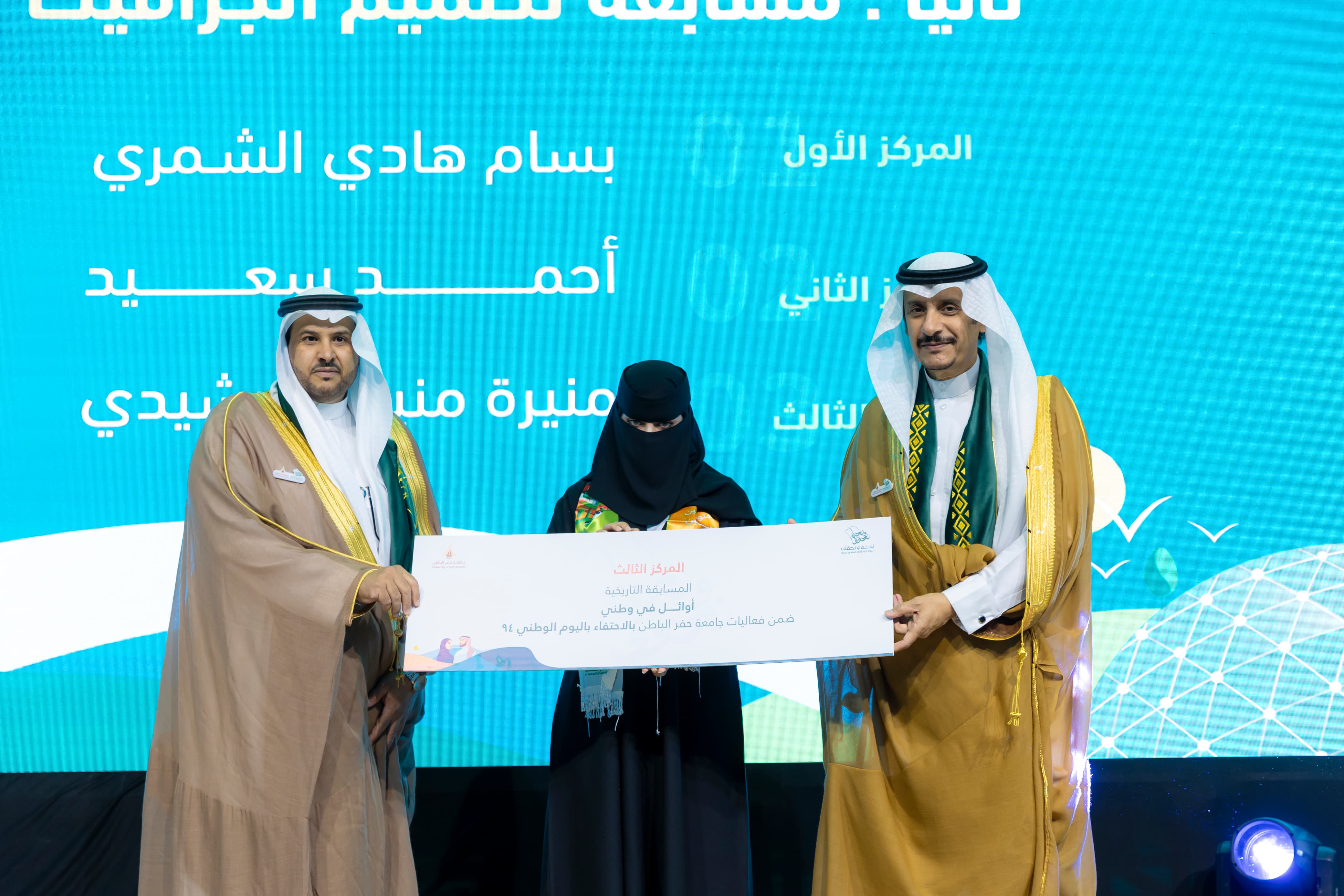 برعاية كريمة وتشريف من صاحب السمو الأمير عبدالرحمن بن عبدالله بن فيصل محافظ حفر الباطن، احتفت جامعة حفر الباطن اليوم الأربعاء بمناسبة ذكرى اليوم الوطني 94 وذلك على مسرح الجامعة بالمبنى الرئيس.