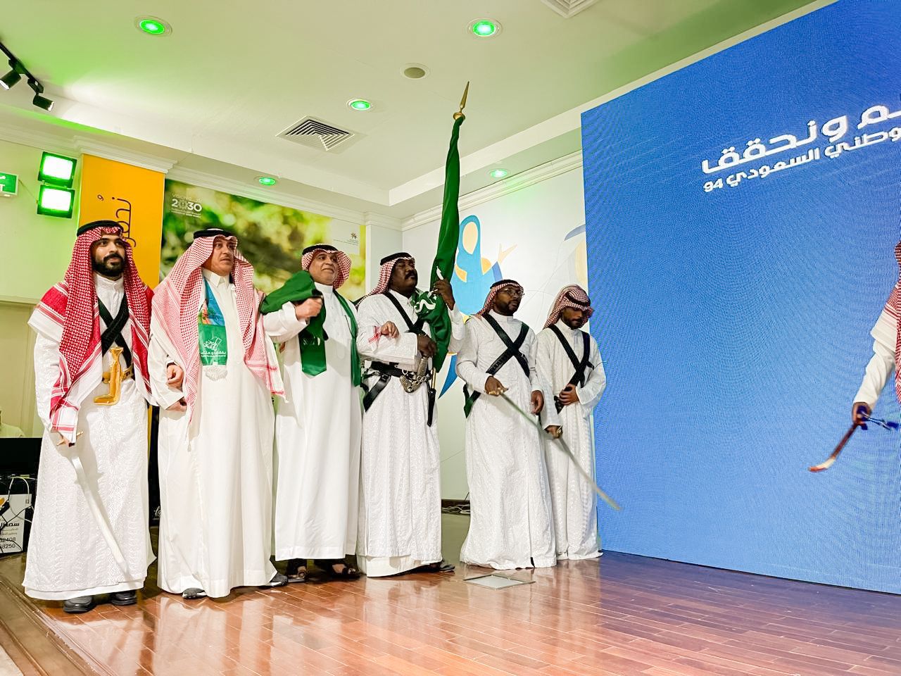 احتفل فرع الوزارة باليوم الوطني 94 ،حيث بدأ الحفل بالنشيد الوطني تلاه آيات عطره من القرآن الكريم ومن ثم كلمة باليوم الوطني لسعادة مدير عام فرع الوزارة ثم قصيدة وطنية القاها الشاعر احمد بن مروي السديري تلاها عرض مرئي لقصص ملهمه لانجازات الوزارة واختتم الحفل بالعرضة السعودية .