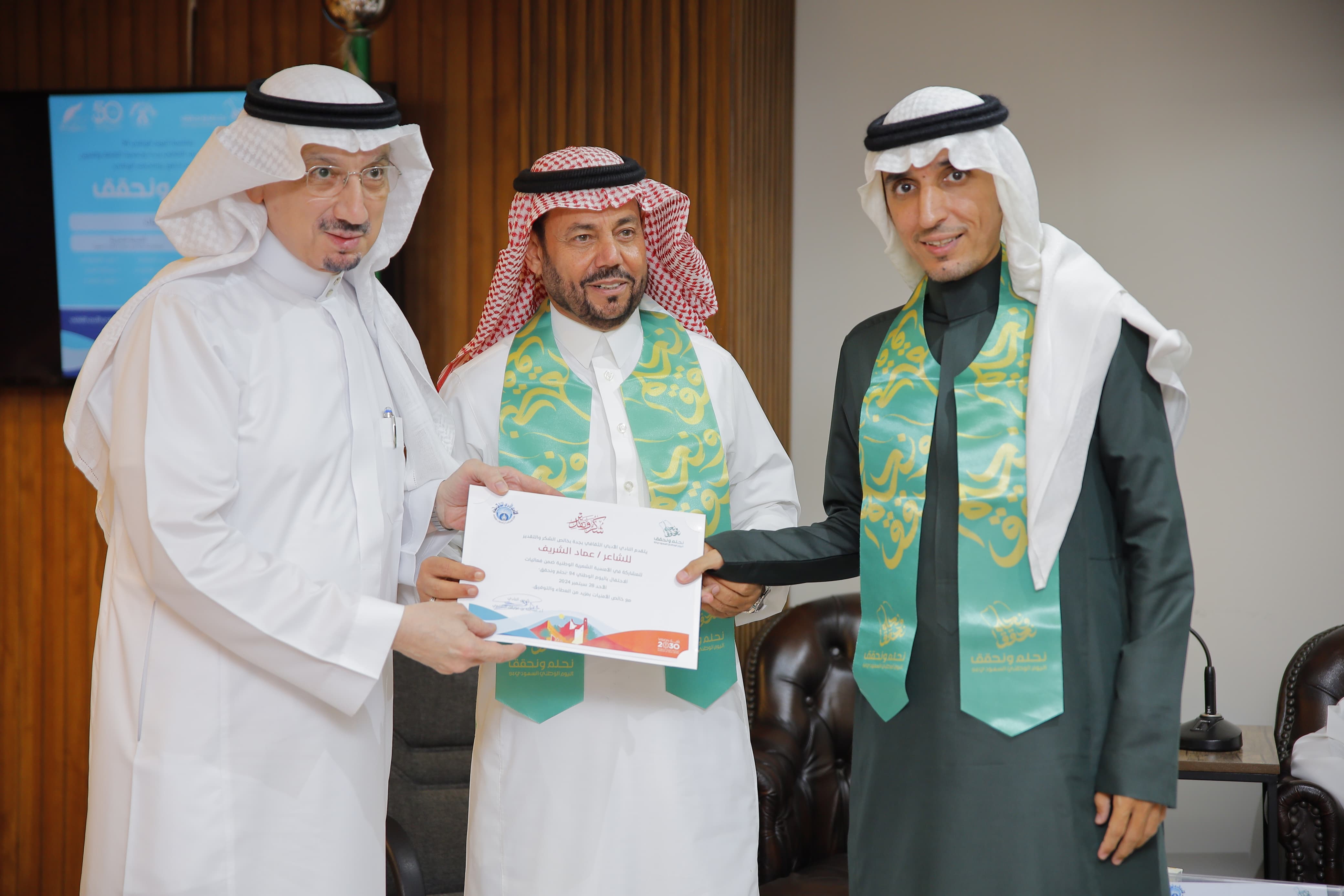 وبعدها بدأت الامسية الشعرية التي أحياها مجموعة من الشعراء وهم : الشاعر بندر السلمي والشاعرة هياء الشهراني والشاعر عماد الشريف والشاعر عبدالله السيد والشاعر فيصل العمري والشاعرة وفاء الغامدي حيث تسابقوا لتقديم اجمل القصائد التي تتغنى بالوطن وفي نهاية الامسية كرم الدكتور عويقل الشعراء المشاركين والفنانين والخطاطين .
