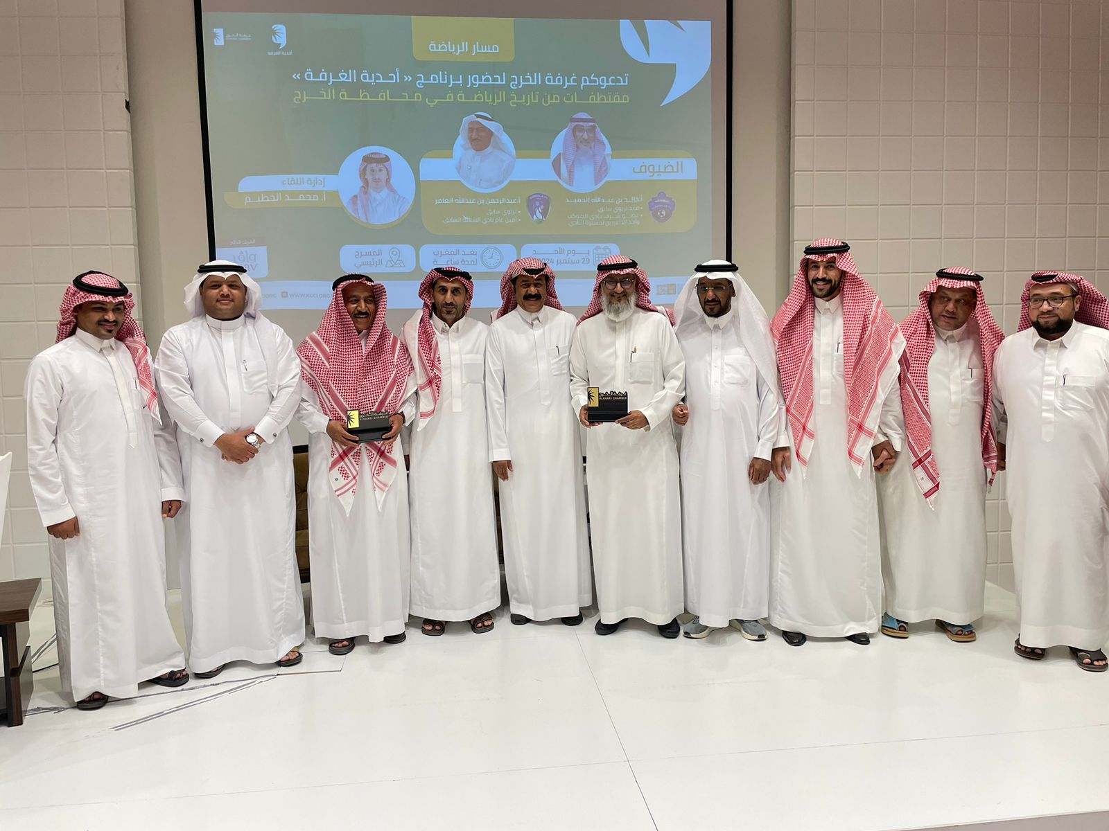 استضافت غرفة الخرج مساء الأحد ضمن برنامج احدية الغرفة في مسار الرياضة لقاء بعنوان "مقتطفات من تاريخ رياضة الخرج" بإدارة الاستاذ علي الدريهم بحضور ضيوف البرنامج
