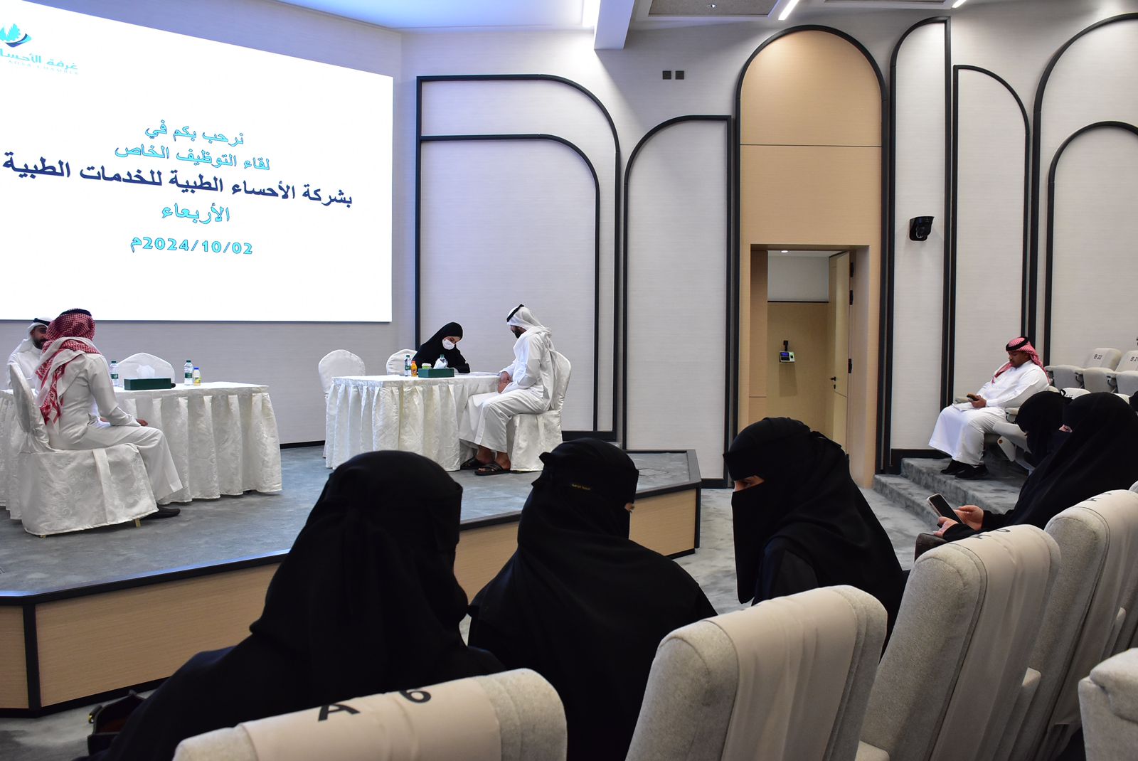 نظّمت غرفة الأحساء بالتعاون مع وزارة الموارد البشرية والتنمية الاجتماعية "مكتب الضمان الاجتماعي بالأحساء "تمكين"، والمعهد الثانوي الصناعي الأول بالأحساء صباح أمس الأربعاء 02 أكتوبر 2024، لقاء توظيف مع شركة الأحساء للخدمات الطبية وشركة السلام للخدمات الطبية، لعرض 74 وظيفة متنوّعة، وذلك بقاعة الشيخ سليمان الحماد -رحمه الله- بمقر الغرفة.