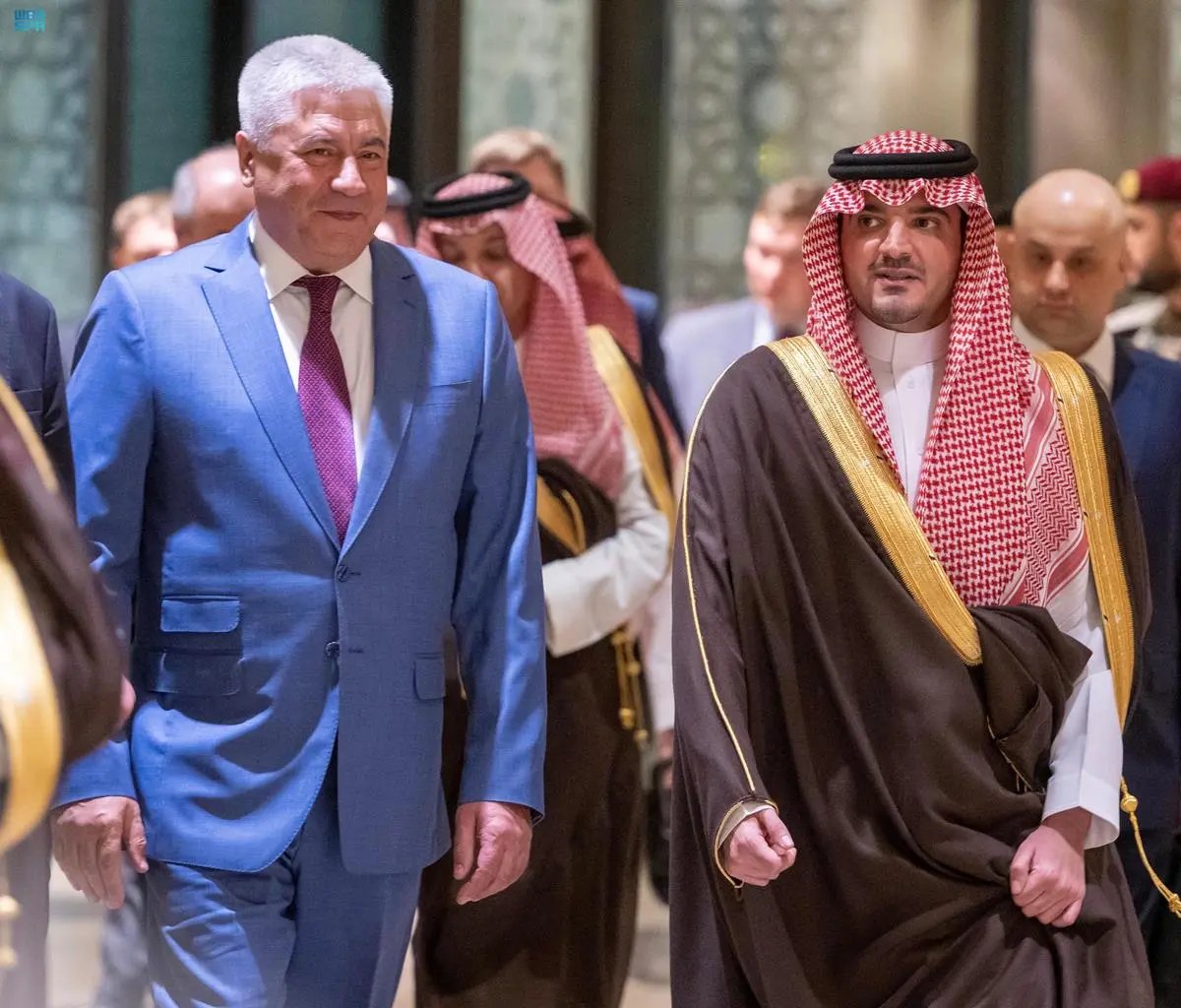 عقد صاحب السمو الملكي الأمير عبدالعزيز بن سعود بن نايف بن عبدالعزيز وزير الداخلية، اليوم، جلسة مباحثات رسمية مع معالي وزير الداخلية بجمهورية روسيا الاتحادية الفريق أول فلاديمير كولوكولتسيف، وذلك بديوان وزارة الداخلية في الرياض.