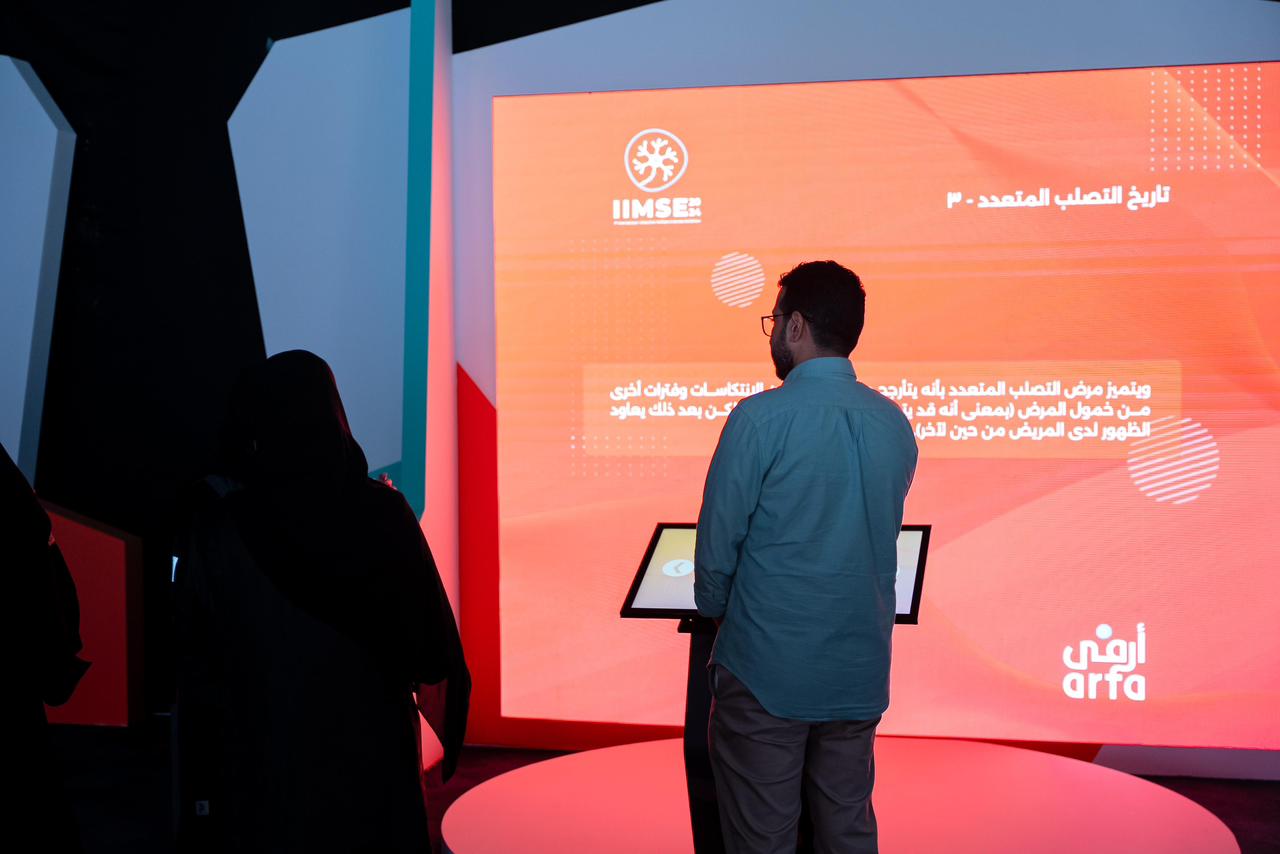 المعرض، الذي نُظم بمشاركة أكثر من 33 جهة حكومية وخاصة ومؤسسات صحية وجهات من البحرين والإمارات العربية المتحدة ، وقد كان المعرض مخصصاً لتوعية المجتمع بمرض التصلب المتعدد ويستهدف الممارسين الصحيين من مختلف التخصصات الطبية لزيادة معرفتهم العلمية بالتصلب المتعدد ، حيث تضمن شاشات تفاعلية توعوية ركزت على التعريف بالمرض وتاريخ التصلب وبداياته الأولى وأحدث وسائل التشخيص والعلاج، وكذلك الأعراض المبكرة التي يمكن من خلالها اكتشاف المرض في مراحله الأولى. كما شمل المعرض محاضرات علمية لتعزيز المعرفة العلمية للمختصين بطرق تشخيص وعلاج التصلب المتعدد.