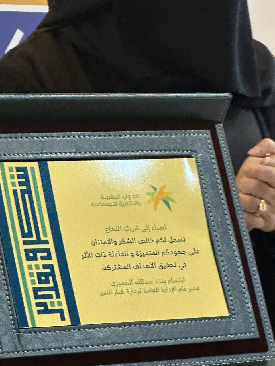 كرمت مدير عام الإدارة العامة لرعاية كبار السن سعادة، الأستاذة ابتسام الحميزي جمعية سيهات للخدمات الاجتماعية لمشاركتها في الملتقى الأول لليوم العالمي لكبار السن.