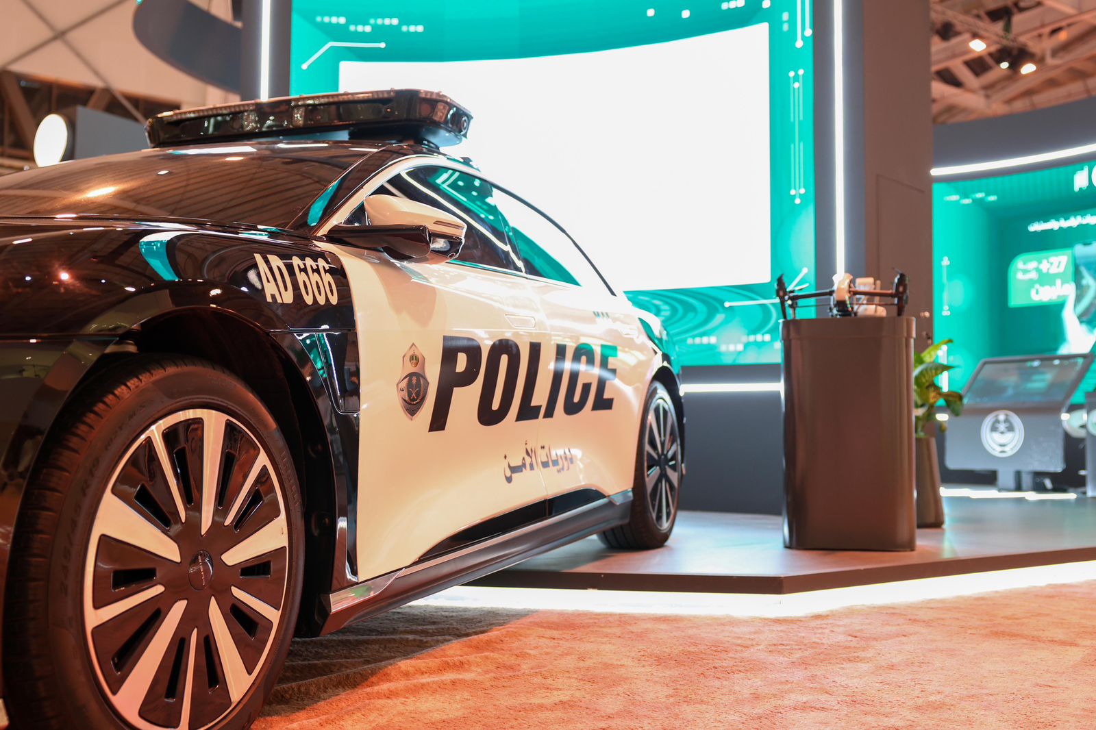 وظهرت اللوحة، على المركبة الأمنية الكهربائية "لوسيد" التي انضمت مؤخرًا إلى منظومة وزارة الداخلية الأمنية لتسهم في تعزيز الأمن وتوظيف تقنيات الذكاء الاصطناعي، وإمكاناتها في حفظ الأمن وحلولها المبتكرة، لتطبيق مفهوم المدن الذكية الآمنة، وتحقيق التوافق والتكامل بين الأنظمة الأمنية، والتشارك المجتمعي والتفاعل الإيجابي بين أفراد المجتمع والأمن.