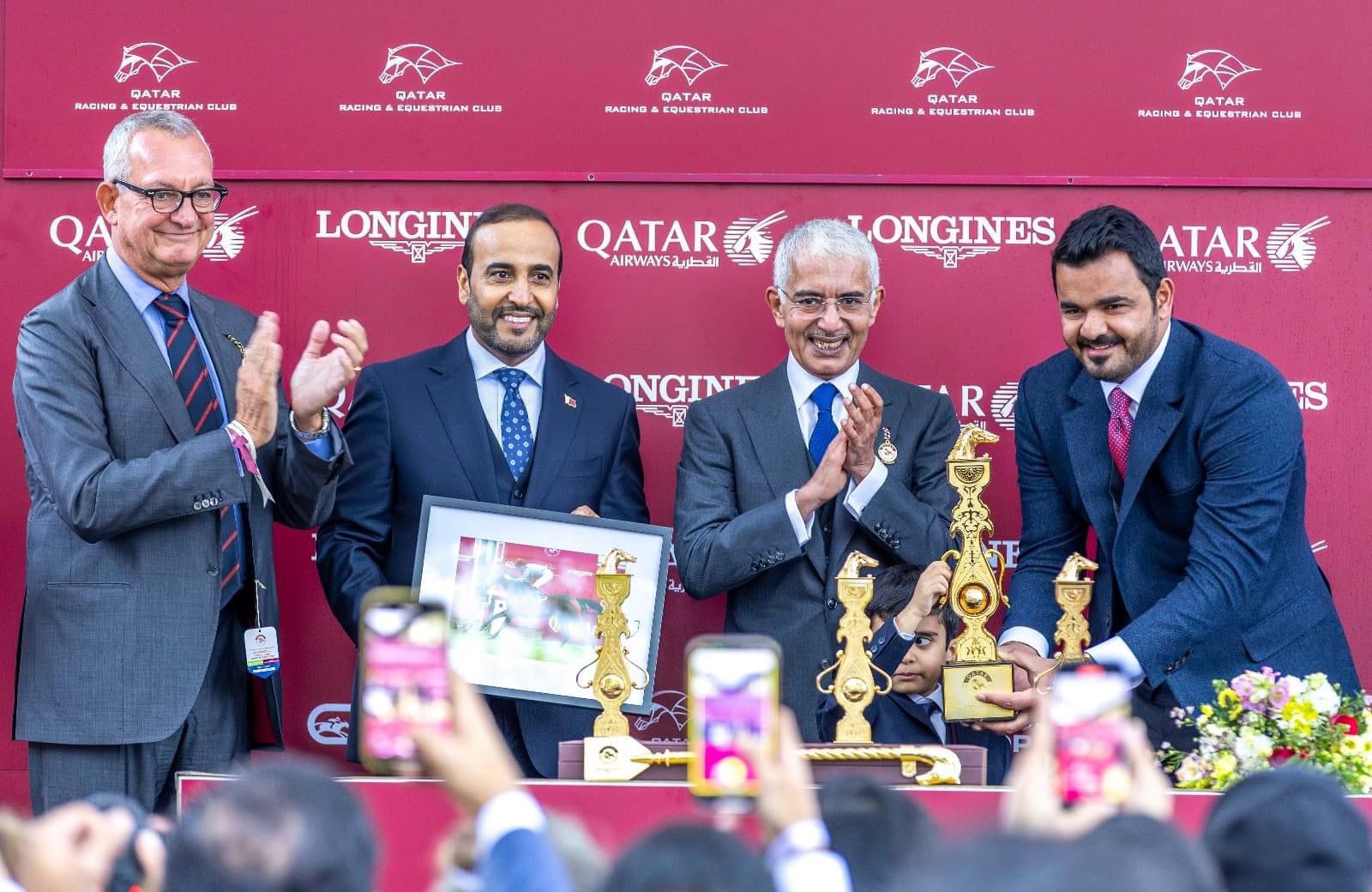 وقام سمو الشيخ عبد الله بن خليفة آل ثاني بتتويج سعادة الشيخ جوعان بن حمد آل ثاني رئيس اللجنة الأولمبية القطرية بكأس قطر العالمي للخيل العربية الأصيلة .