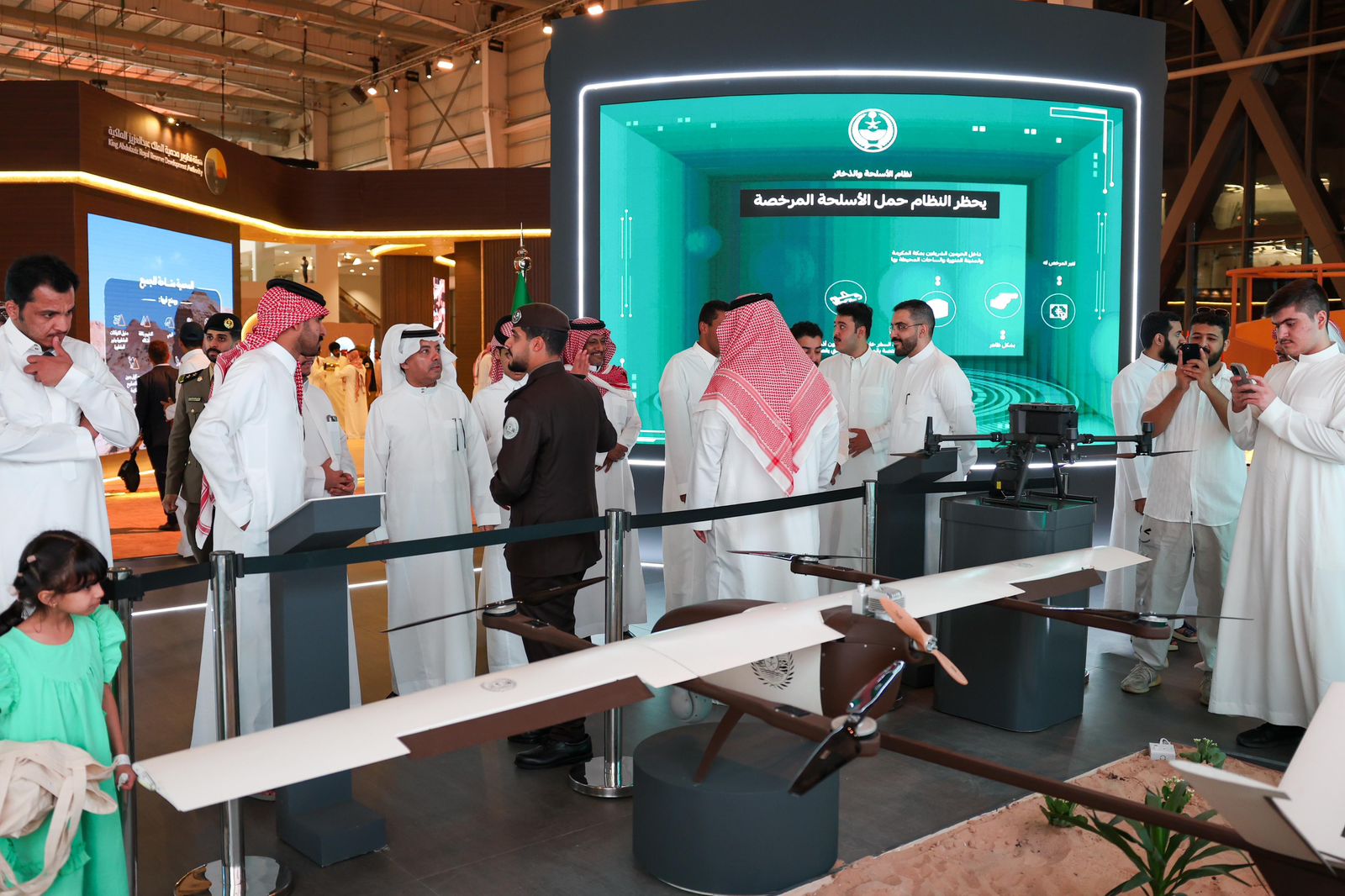 وتستعرض الوزارة في المعرض المركبة الأمنية الكهربائية (لوسيد)، والتعريف بخدمة التأشيرة السياحية، وخدمات منصتها الإلكترونية (أبشر)، واشتراطات رخص حمل واقتناء الأسلحة النارية الفردية، وأسلحة الصيد، والعقوبات المترتبة على مخالفي نظام الأسلحة والذخائر ولائحته التنفيذية، وجهودها في المحافظة على البيئة واستدامتها، وجودة الحياة من خلال مراكز العمليات الأمنية الموحدة (911)، وتقديم الخدمات والاستشارات الطبية والإسعافات الأولية، وعروض للخيالة والدورية الراجلة بالزيّ التاريخي، وسيارة البيرق، والفرقة الموسيقية.