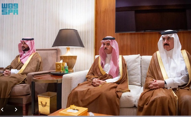 حضر اللقاء، صاحب السمو الملكي الأمير خالد بن سلمان بن عبدالعزيز وزير الدفاع، وصاحب السمو الأمير فيصل بن فرحان بن عبدالله وزير الخارجية، ومعالي وزير الدولة عضو مجلس الوزراء مستشار الأمن الوطني الدكتور مساعد بن محمد العيبان.