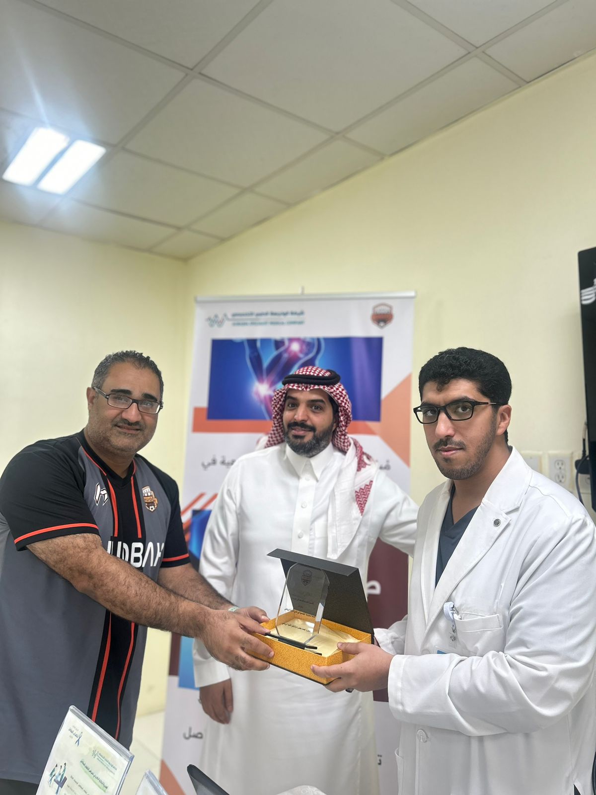 من جهة اخرى كرمت إدارة النادي بحضور طبيب النادي دكتور محمد دامير إدارة مجمع الواجهة الطبي حيث تم تقديم درع بالنيابة عن أعضاء مجلس ادارة النادي برئاسة الاستاذ الوليد الصياح نظير مساهمة المجمع في إنجاح المبادرة و تعاونهم الدائم مع النادي حيث قدمت ادارة مجمع الواجهة الطبي خصومات خاصة و حصرية لمنسوبي النادي في مبادرة صحتنا حياة .