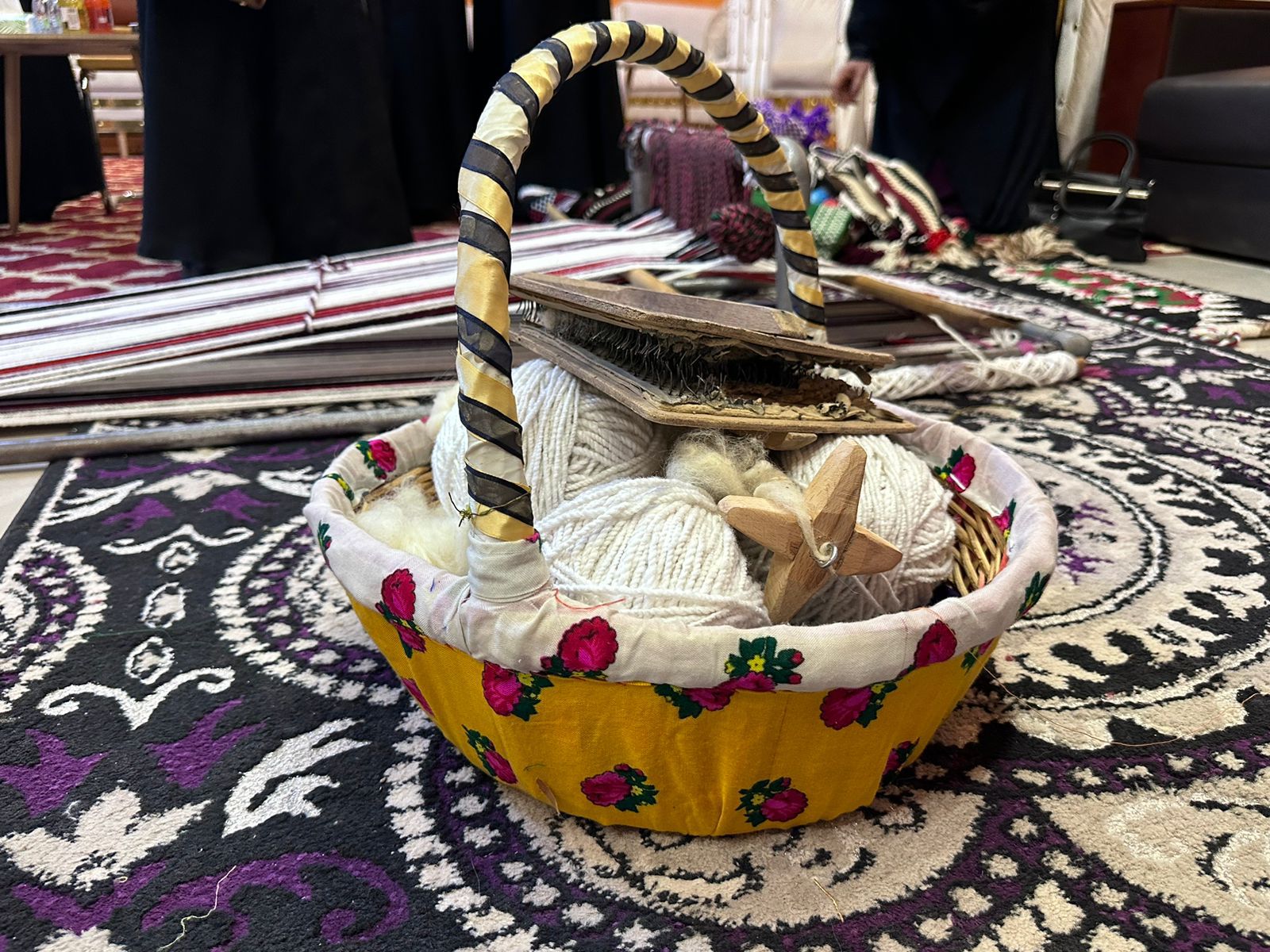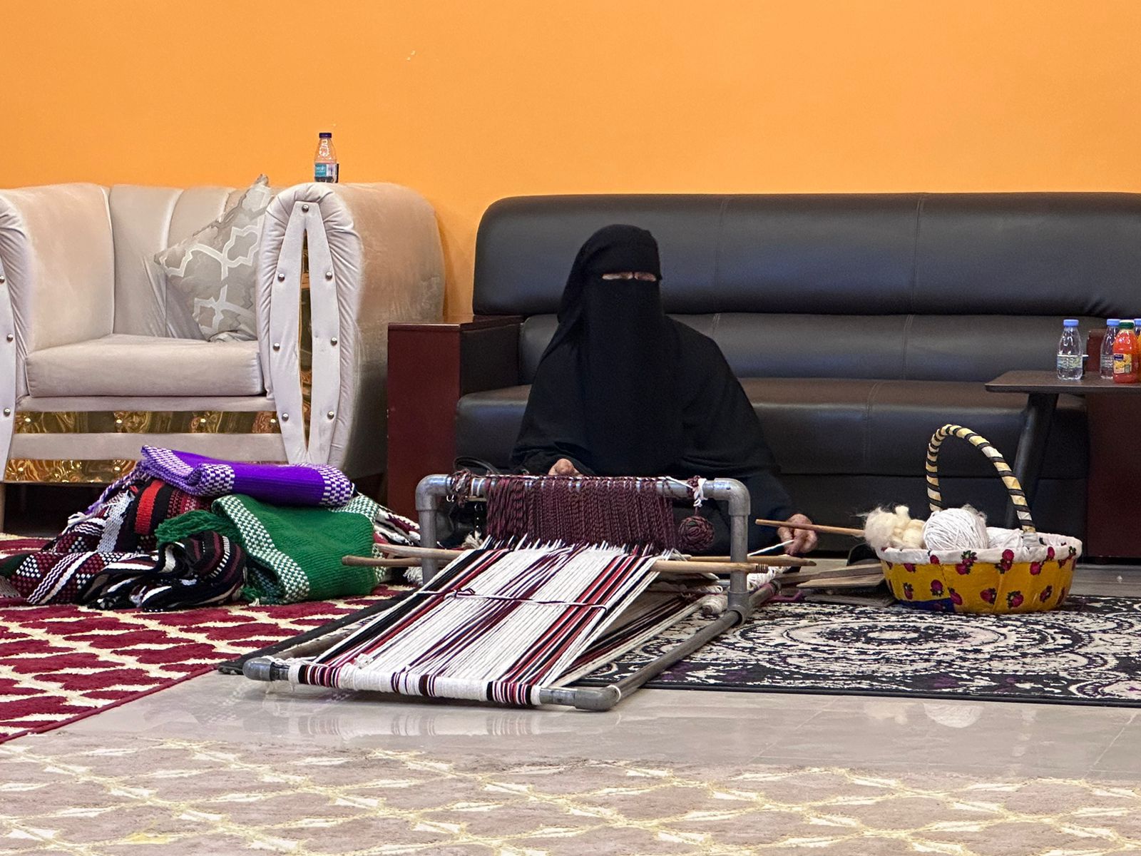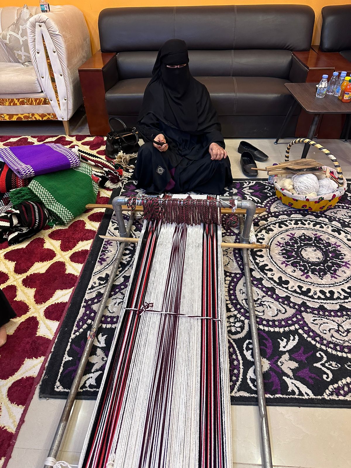 بعد ذلك تطرقت لحرفة السدو  والنسيج من بداية جز الصوف وغسيله ثم تجفيفه وبعد ذلك غزله بالمغزل وتحويله لخيوط جاهزه لعملية النسيج وصناعة بيوت الشعر .