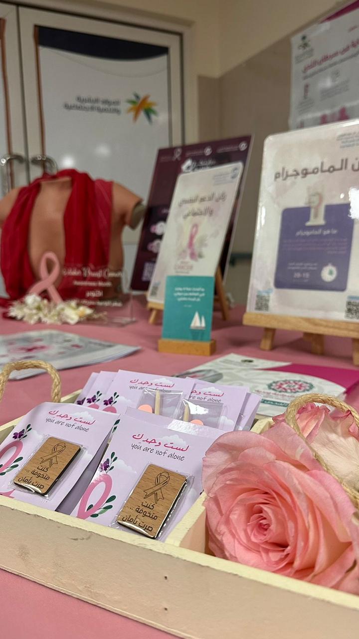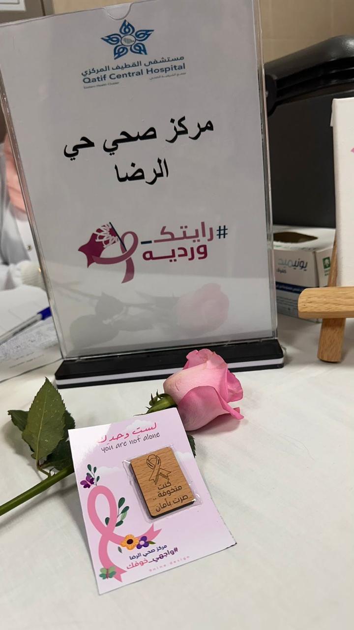 دائمًا مع الحدث نعي أهمية التوعية فنوعي هكذا يحرص مدير وحدة الخدمات المساندة الأستاذ موسى الخبراني على أهمية توعية المجتمع بالأمراض والدور الفعال الذي تقوم به الوحدة من خلال الخدمات المقدمة لدعم المرضى ومن هنا كان للاستاذة ياسمين السيهاتي الدور الفعال في تنفيذ فعالية توعوية تحت عنوان (حبك للحياة سلاحك الأقوى) دعمًا لمرضى سرطان الثدي بالتعاون مع مركز صحي الرضا ضمن برنامج متكامل متضمن