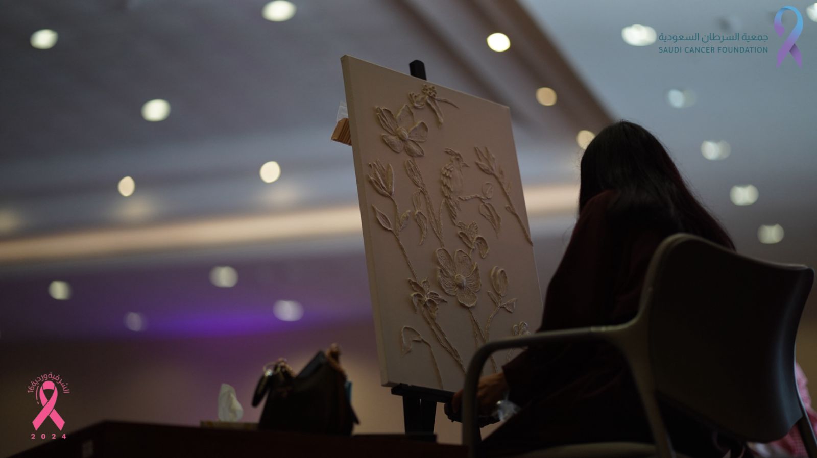 حيث ضم الملتقى رسم حيّ للوحة عنواها الحياة وجلسات حوارية مثرية للحديث عن الأورام والمسببات وطرق العلاج لتوعية وتثقيف الحضور بأهمية الكشف المبكر عن سرطان الثدي قدمتها استشارية علاج الأورام د.أحلام دهل