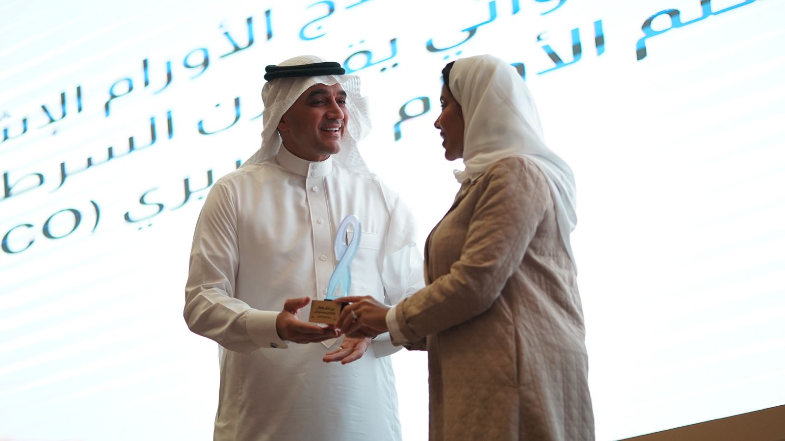 وتخلل الحفل تكريم استشارية علاج أورام الإشعاعي د. أحلام دهل كأول امرأة عربية تحصل على جائزة الطبيبة الملهمة في مجال مكافحة السرطان من قبل الجمعية الأمريكية لعلم الأورام السريري (ASCO)
