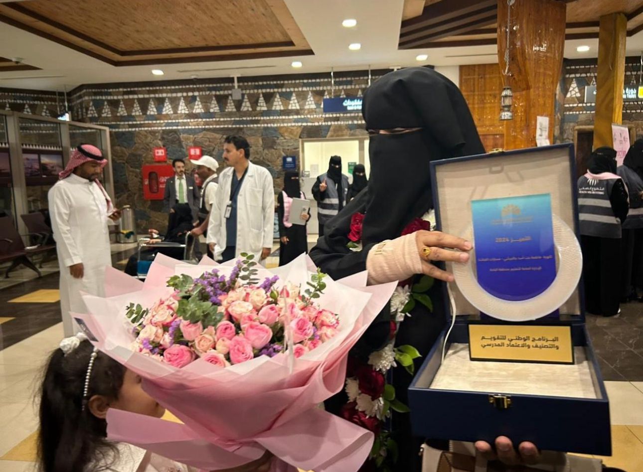 استقبلت المساعد للشؤون التعليمية بمنطقة الباحة، الأستاذة نوال الدرمحي، وعدد من قيادات الإدارة، اليوم بمطار الملك سعود بالباحة، الأستاذة مريم عبدالله محمد الغامدي، مديرة مدرسة فاطمة بنت أسد ببلجرشي، التي حققت جائزة التميز المدرسي على مستوى مدارس المملكة.