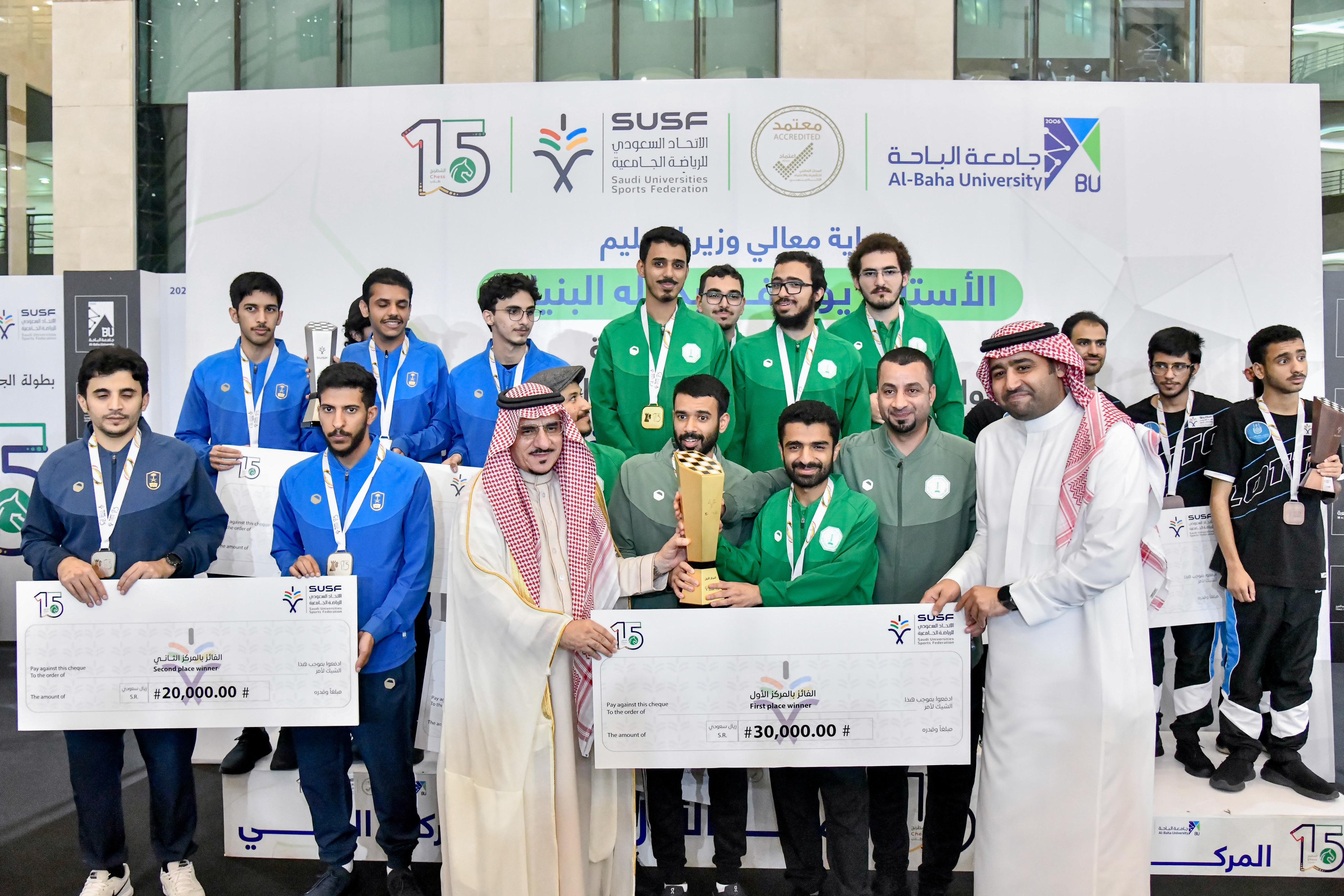 وتوّج رئيس جامعة الباحة، وأمين عام الاتحاد السعودي للرياضة الجامعية محمد الشمري ومدير البطولة الدكتور خالد بن ناصر الخريجي الفائزين، حيث فازت بالمركز الأول والميداليات الذهبية جامعة الملك فهد للبترول والمعادن ، وحصدت المركز الثاني والميداليات الفضية جامعة الملك سعود، وحققت المركز الثالث والميداليات البرونزية جامعة أم القرى.