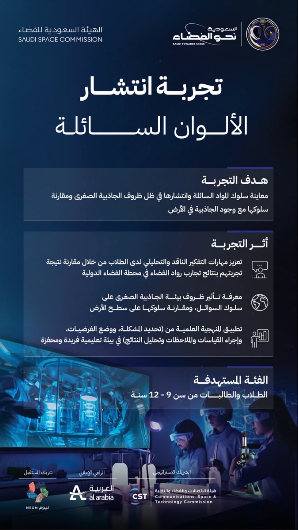 تعرف على تجربة "انتشار الألوان السائلة" التي يجريها رائدا الفضاء السعوديان @Astro_Rayyanah @AstroAli11 في محطة الفضاء الدولية بشكل تفاعلي مع طلاب المدارس في المملكة.