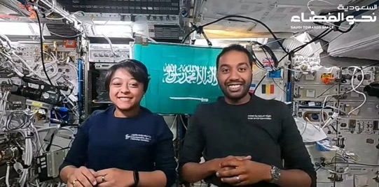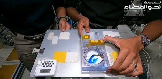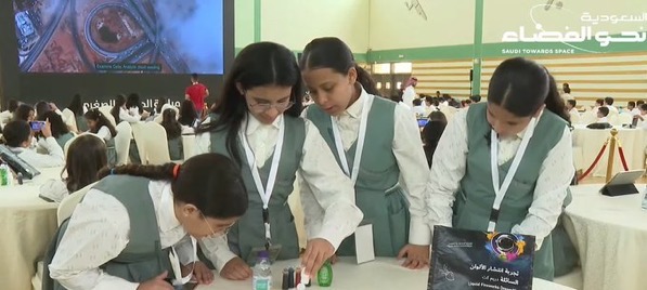 طلاب المدارس بالمملكة يجرون مع رائدي الفضاء السعوديين @Astro_Rayyanah @AstroAli11 التجربة التفاعلية "انتشار الألوان السائلة"