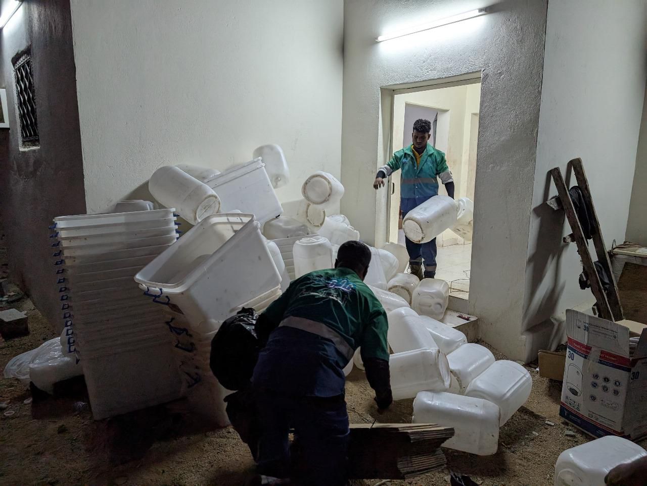 وأوضحت الأمانة أن الفرق الميدانية التابعة لها، بالتعاون مع فرق الضبط الميداني وهيئة الزكاة والضريبة والجمارك، داهمت الموقع وصادرت 1298.8 لترًا من الجلسرين مجهول المصدر، و68.2 كيلوغرامًا من المعسل الجاهز، و284 لترًا من نكهات مجهولة المصدر بعضها منتهية الصلاحية، إضافة إلى 5,816 وحدة من العبوات والأكياس الفارغة، شملت سطولًا كبيرة وصغيرة وعبوات بلاستيكية.