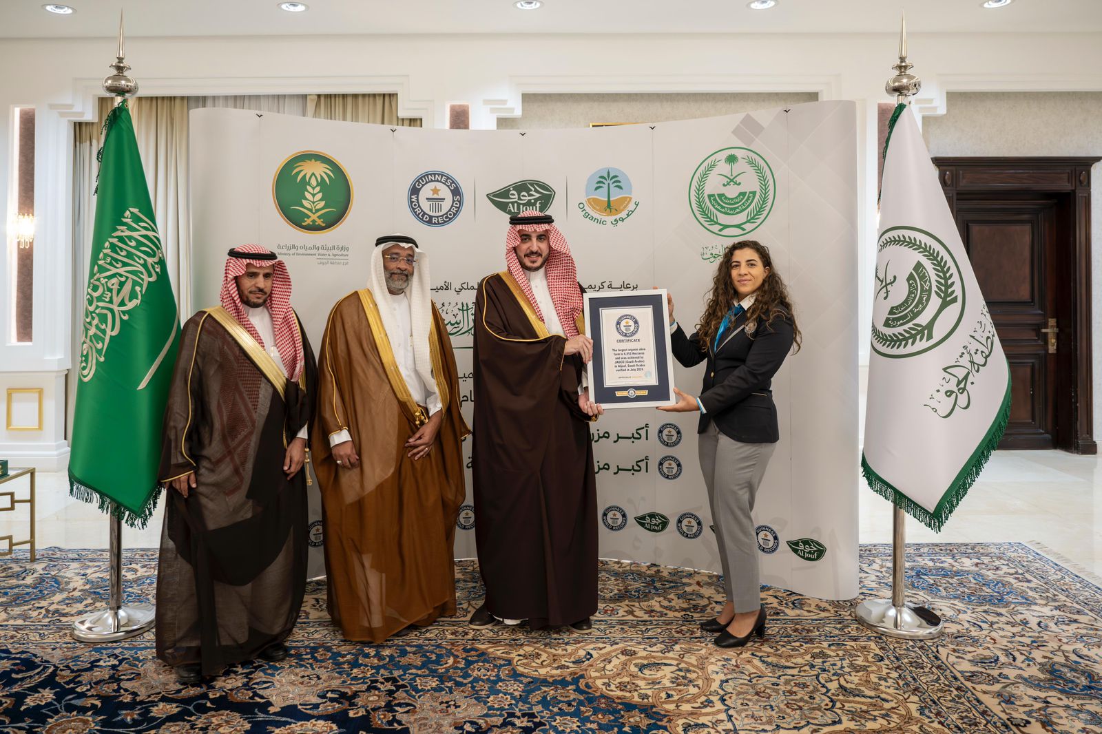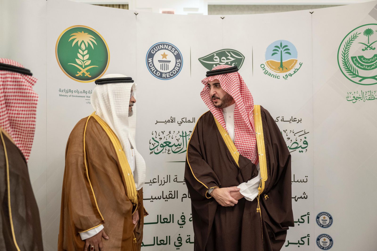واطّلع أمير منطقة الجوف على شهادتي جينيس التي حصلت عليهما شركة الجوف للتنمية الزراعية بصفتها أكبر مزرعة عضوية بالعالم، وأكبر مزرعة زيتون حديثة بالعالم.