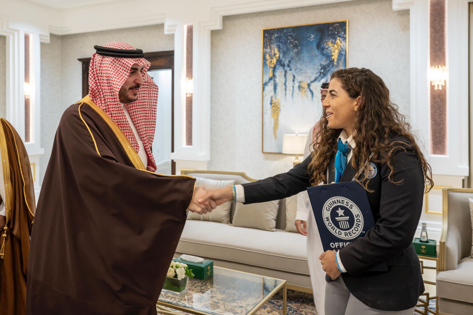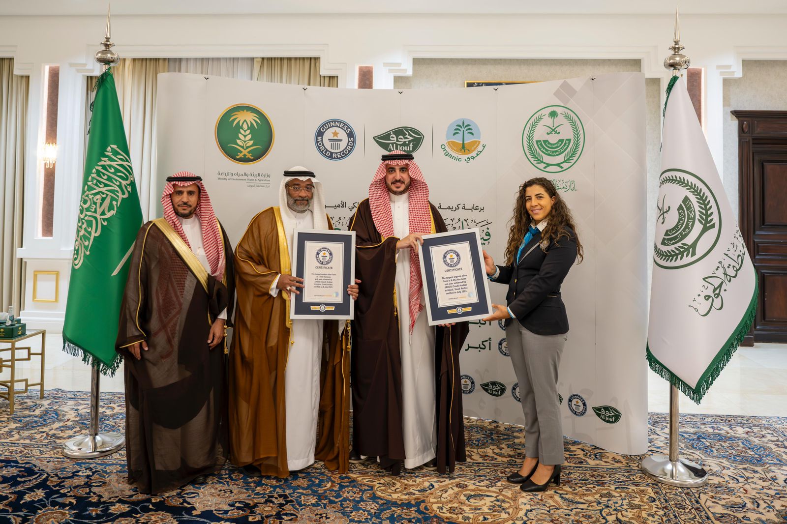 جاء ذلك خلال رعايته بمكتبه اليوم، تسليم شهادتي جينيس للأرقام القياسية من ممثل جينيس للأرقام القياسية كنزي بنت عماد الدفراوي للرئيس التنفيذي لشركة الجوف للتنمية الزراعية المهندس مازن باداود، بحضور مدير عام فرع وزارة البيئة والمياه والزراعة بالمنطقة المهندس عبد العزيز بن محمد الرجيعي.