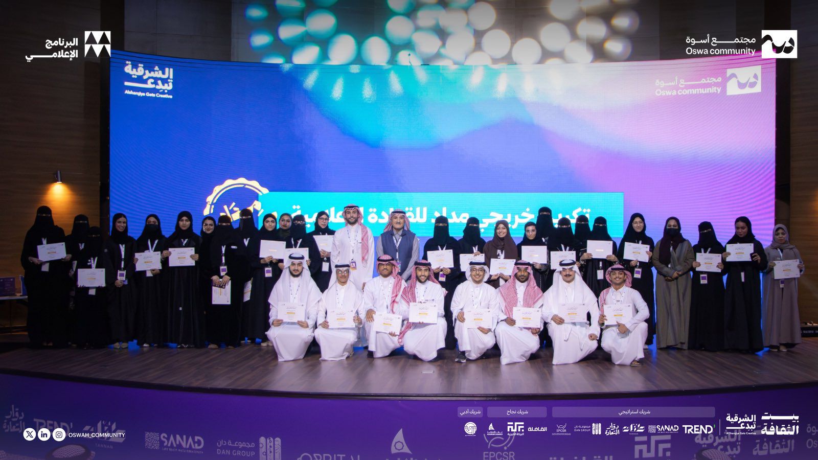 من المنطقة الشرقية وتحديدًا من بيت الثقافة بالدمام، وضع مجتمع أسوة لتنمية القيادات الشابة أولى بصماته ضمن أكبر المبادرات المجتمعية في المملكة “الشرقية تبدع” بكل تميز، حيث جاء برنامج مِداد للقيادة الإعلامية بنسخته الثانية ليعزز هذا النجاح، ويسهم في تطوير المهارات الإعلامية القيادية عبر جذب ٣٩ مشاركًا من نخبة الشباب الطامح.