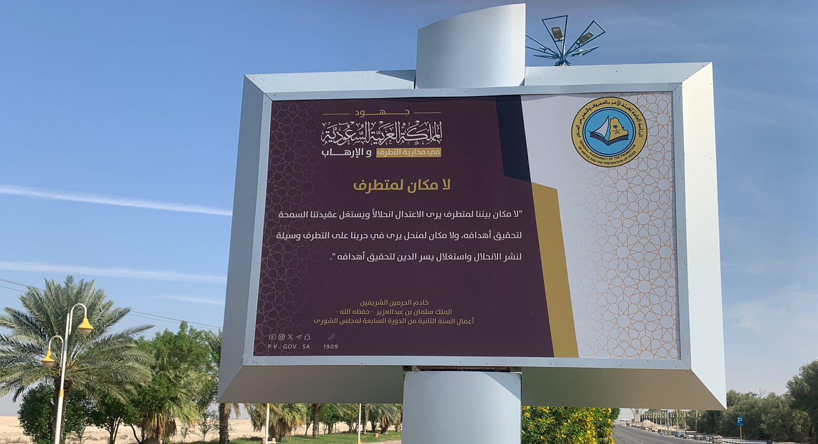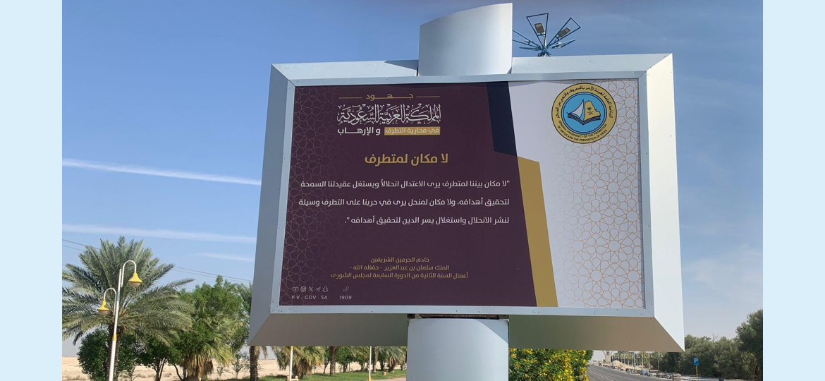فعلت هيئة الأمر بالمعروف والنهي عن المنكر بمحافظة قرية العليا التابعة لفرع الرئاسة العامة بالمنطقة الشرقية البرنامج التوعوي "جهود المملكة العربية السعودية في محاربة التطرف والإرهاب"، في الأماكن العامة من خلال الشاشات الإلكترونية، بالتعاون مع بلدية المحافظة.