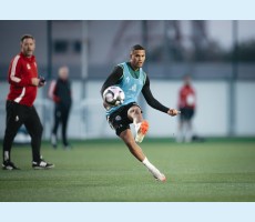 وخاض الفريق تمرينًا صباحيًا، بدأ بإحماء ثم استحواذ على الكرة، تبعه تمرين على بعض الجمل التكتيكية.
