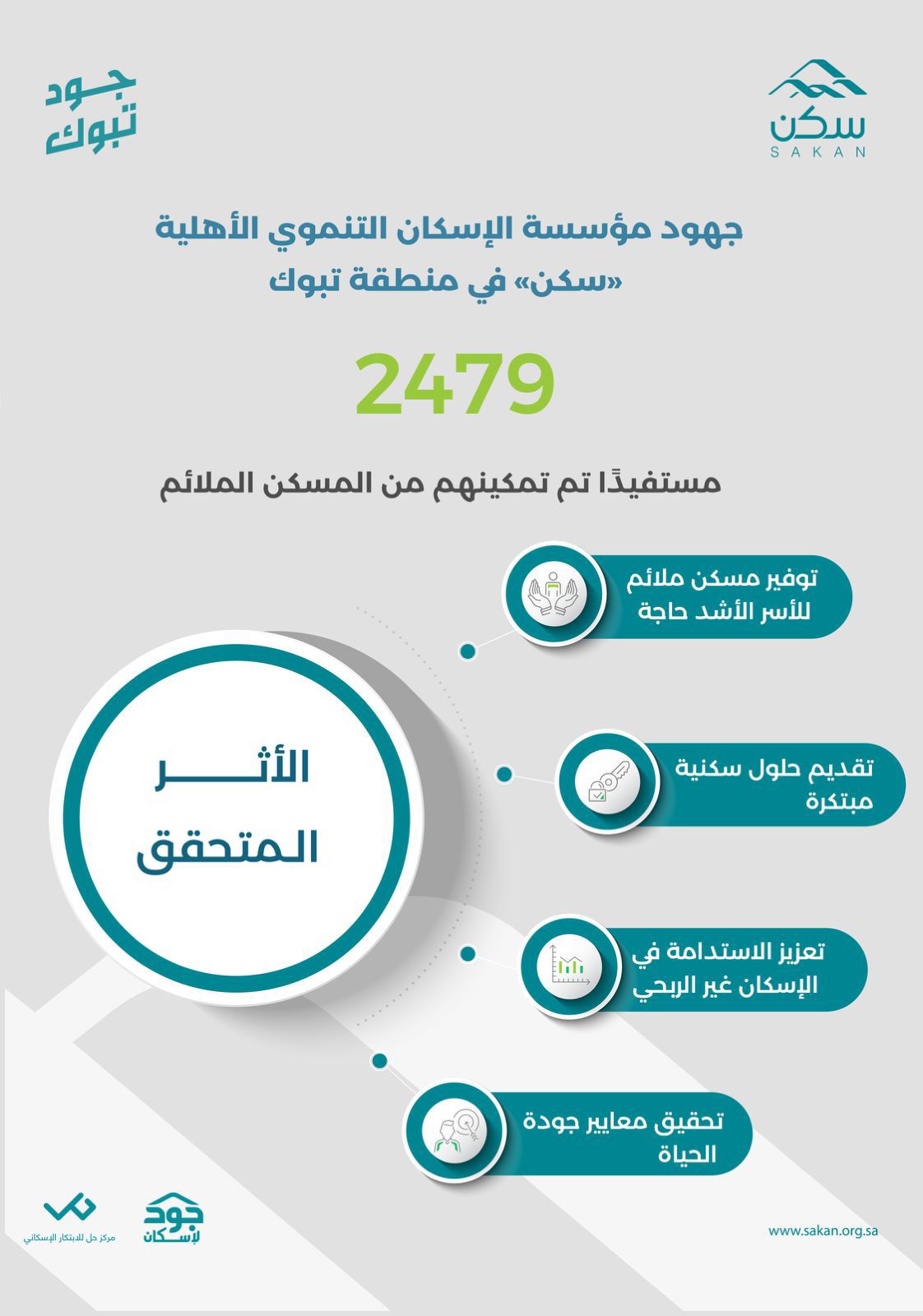 في إطار الجهود المستمرة لدعم الأسر الأشد حاجة، أعلنت مؤسسة  الإسكان التنموي  الأهلية “سكن” عن مساهمتها في تمكين أكثر من 2479 مستفيد من الأسر الأشد حاجة للمسكن الملائم في منطقة تبوك حتى نهاية الربع الثالث للعام 2024 م، مما ساهم في تلبية احتياجات عددًا من الأسر المستحقة واستدامة العطاء في المملكة.