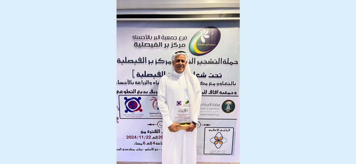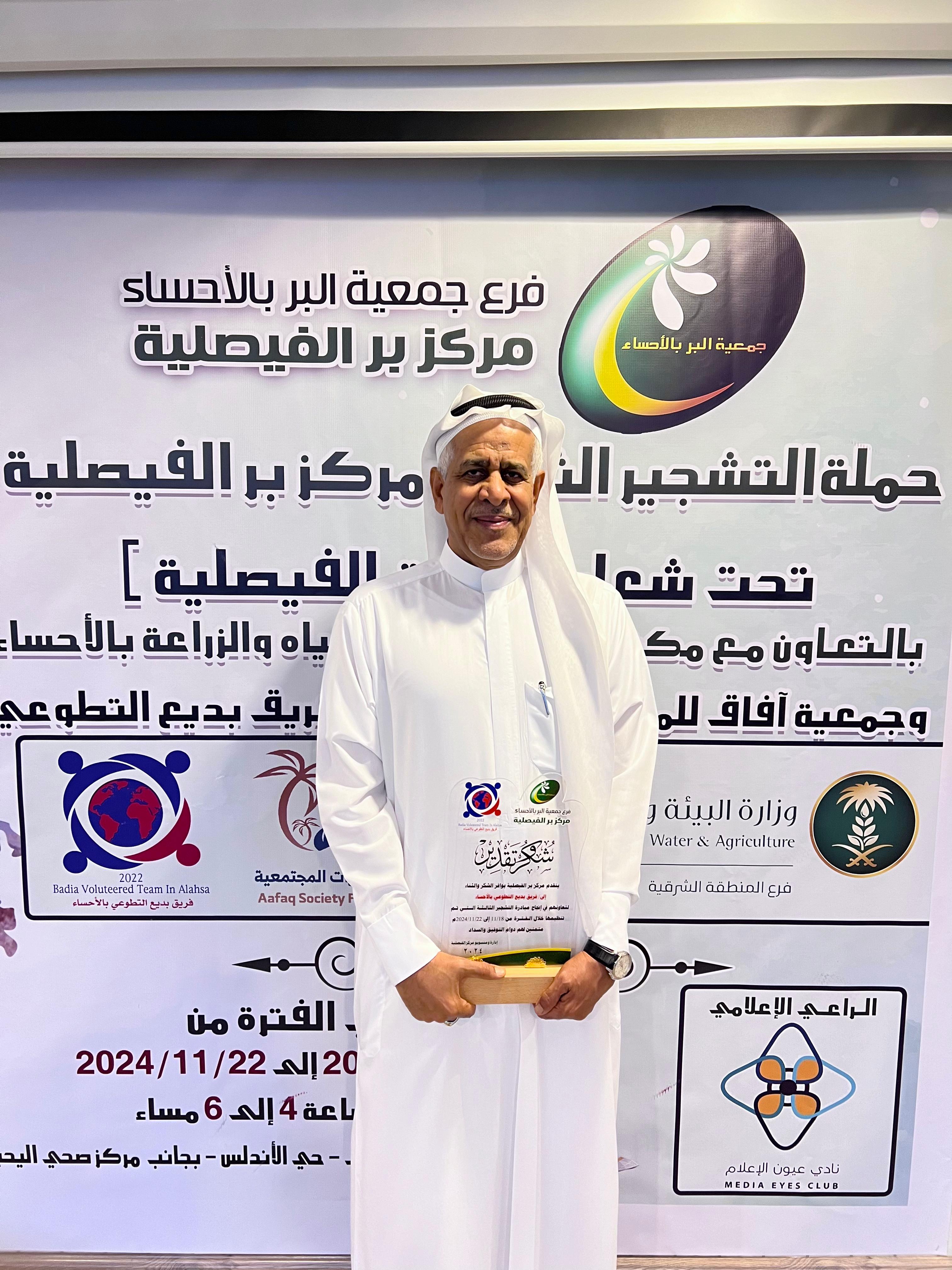 وسط أجواء بيئية خضراء وبحضور كبار الشخصيات بالمجال الخيري والتطوعي وممثلي القطاع غير ربحي بالمنطقة ، كرمت جمعية البر بالأحساء ( مركز بر الفيصلية ) فريق بديع التطوعي نظير مساهمته بحملة تشجير حي الفيصلية وماحولها ، الجاري تنفيذها خلال الفترة 19 -22 نوفمبر 2024م.