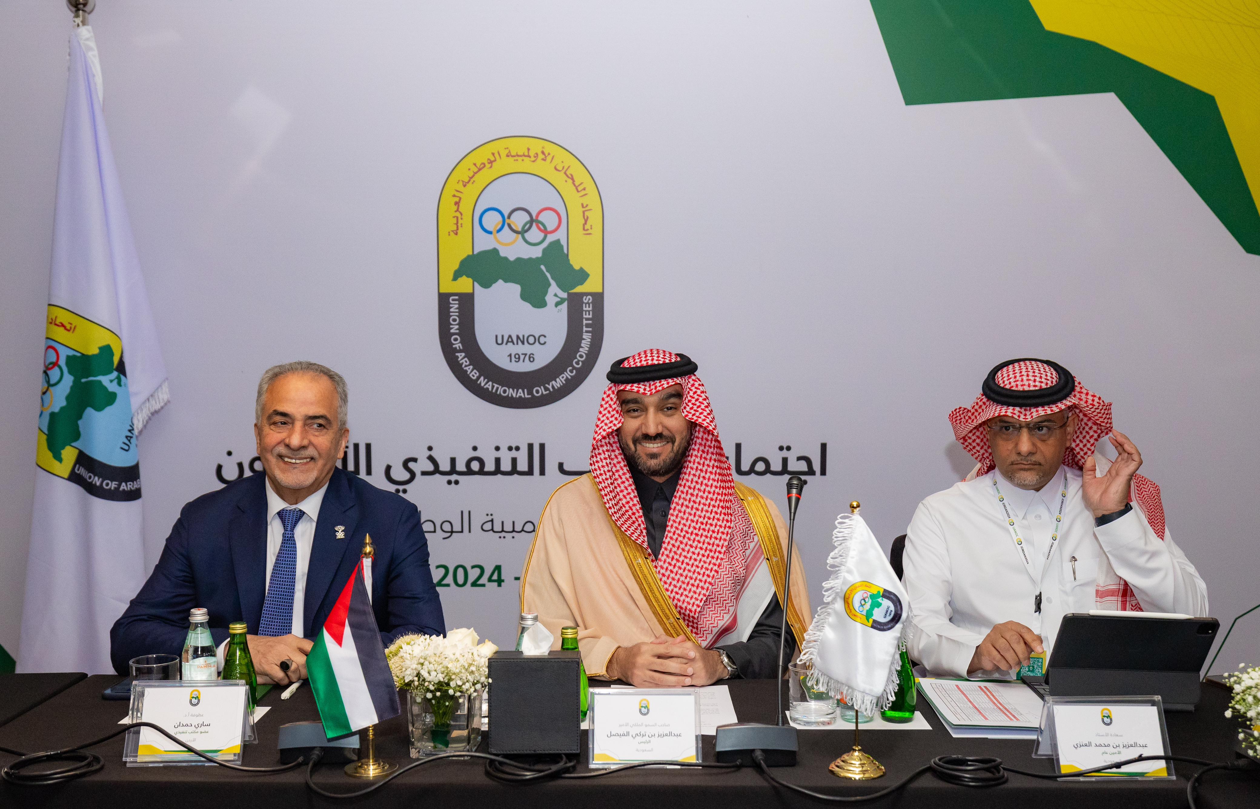 ترأس صاحب السمو الملكي الأمير عبدالعزيز بن تركي الفيصل، رئيس اتحاد اللجان الأولمبية الوطنية العربية، الاجتماع الثاني والعشرين للجمعية العمومية العادية لاتحاد اللجان الأولمبية الوطنية العربية، واجتماع المكتب التنفيذي الأربعين للاتحاد، اليوم الخميس في العاصمة الأردنية "عمّان"، بحضور معالي وزير الشباب نائب رئيس اللجنة الأولمبية الأردنية المهندس يزن الشديفات نيابة عن صاحب السمو الملكي الأمير فيصل بن الحسين رئيس اللجنة الأولمبية الأردنية، وأصحاب السمو والمعالي والسعادة رؤساء اللجان الأولمبية الوطنية العربية.