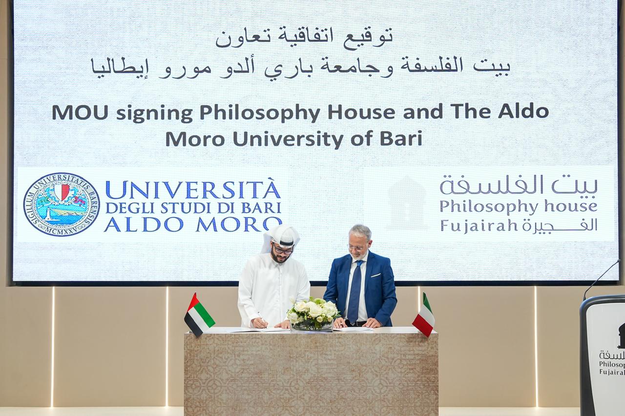 حيث تم توقيع اتفاقية تعاون بين الدكتور أحمد السماحي مدير بيت الفلسفة، د. باولو بونزيو ممثلاً جامعة بارى ألدو مورو الإيطالية.
