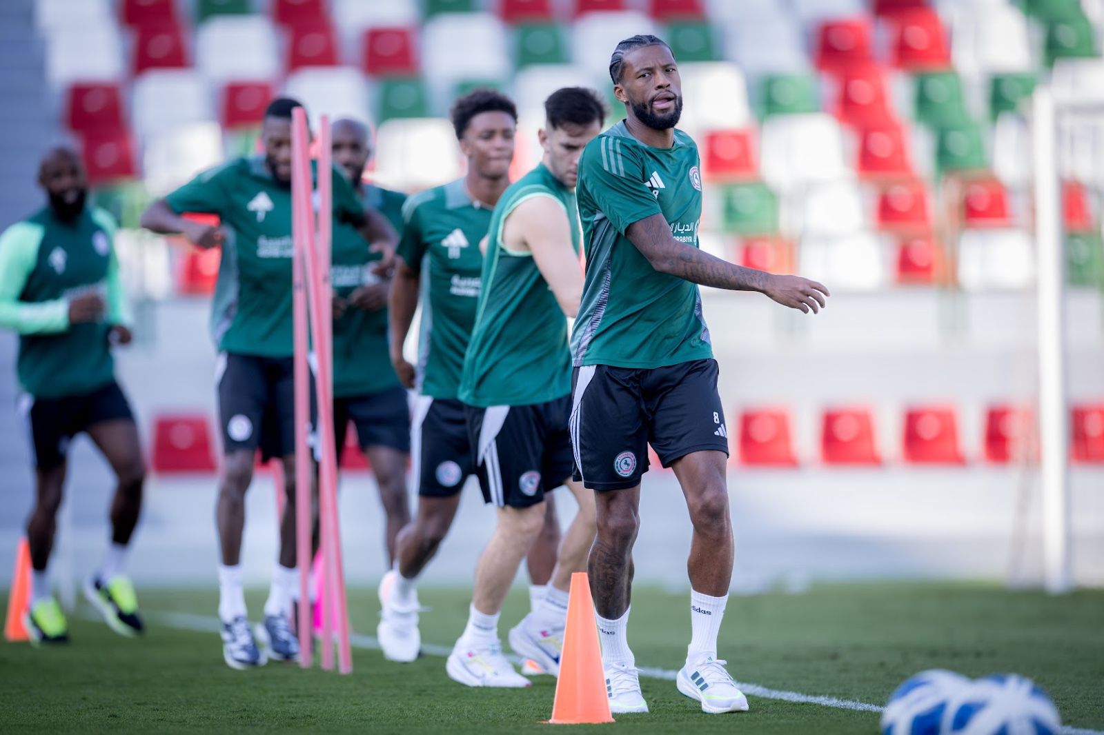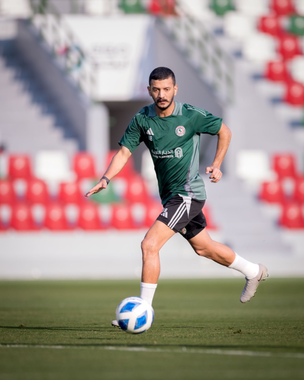 وخاض الفريق اليوم الثلاثاء تمرينه الأخير قبل المغادرة إلى الدوحة، وافتتح التمرين بالإحماء ثم تمرين استحواذ واختتم بتمرين للكرات الثابتة.