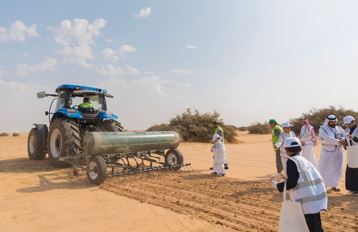 وتشارك الجميع في تنفيذ اعمال التنظيف وازالة المخلفات ونثر حوالي ١٧ مليون بذرة من معرض البذور بمؤسسة مروج الاهلية
