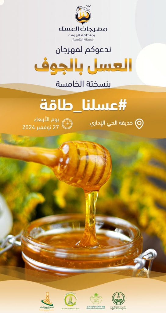 يُذكر أن هنالك مهرجان للعسل يقام سنوياً بالجوف تحت رعاية سمو أمير منطقة الجوف صاحب السمو الملكي الأمير فيصل بن نواف حيث ينطلق مهرجان العسل الخامس بالجوف اليوم 27 نوفمبر 2024 م ولمدة عشرة أيام بحديقة الحي الإداري بالجوف دومة الجندل .