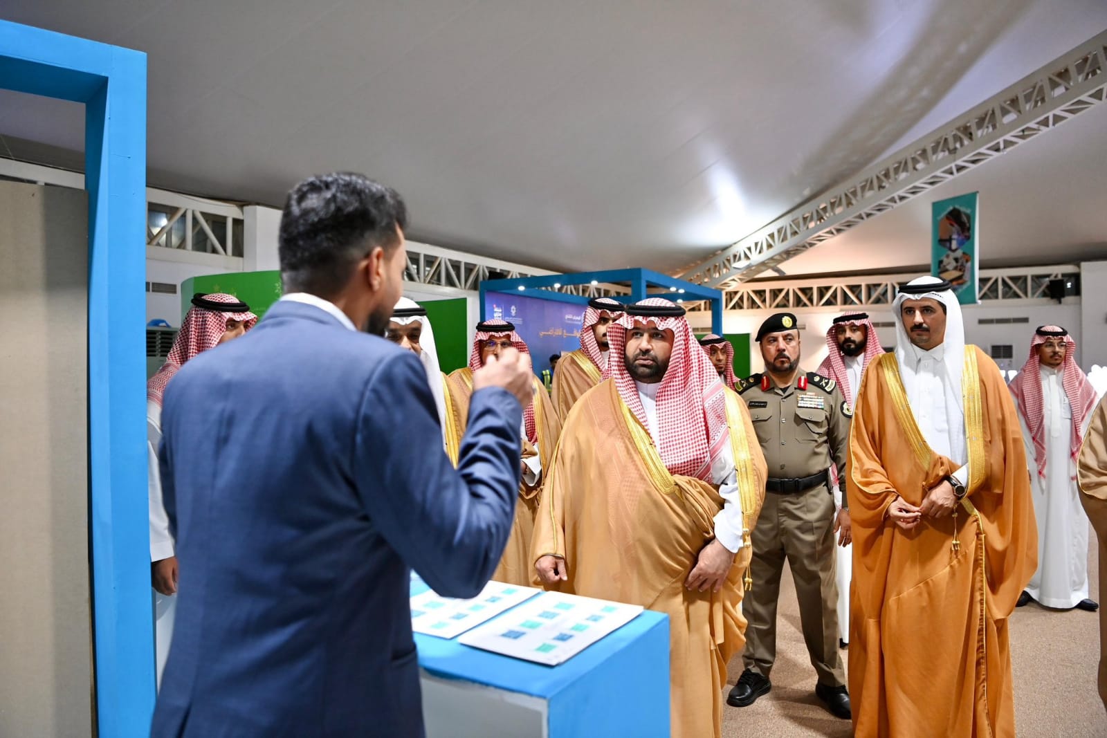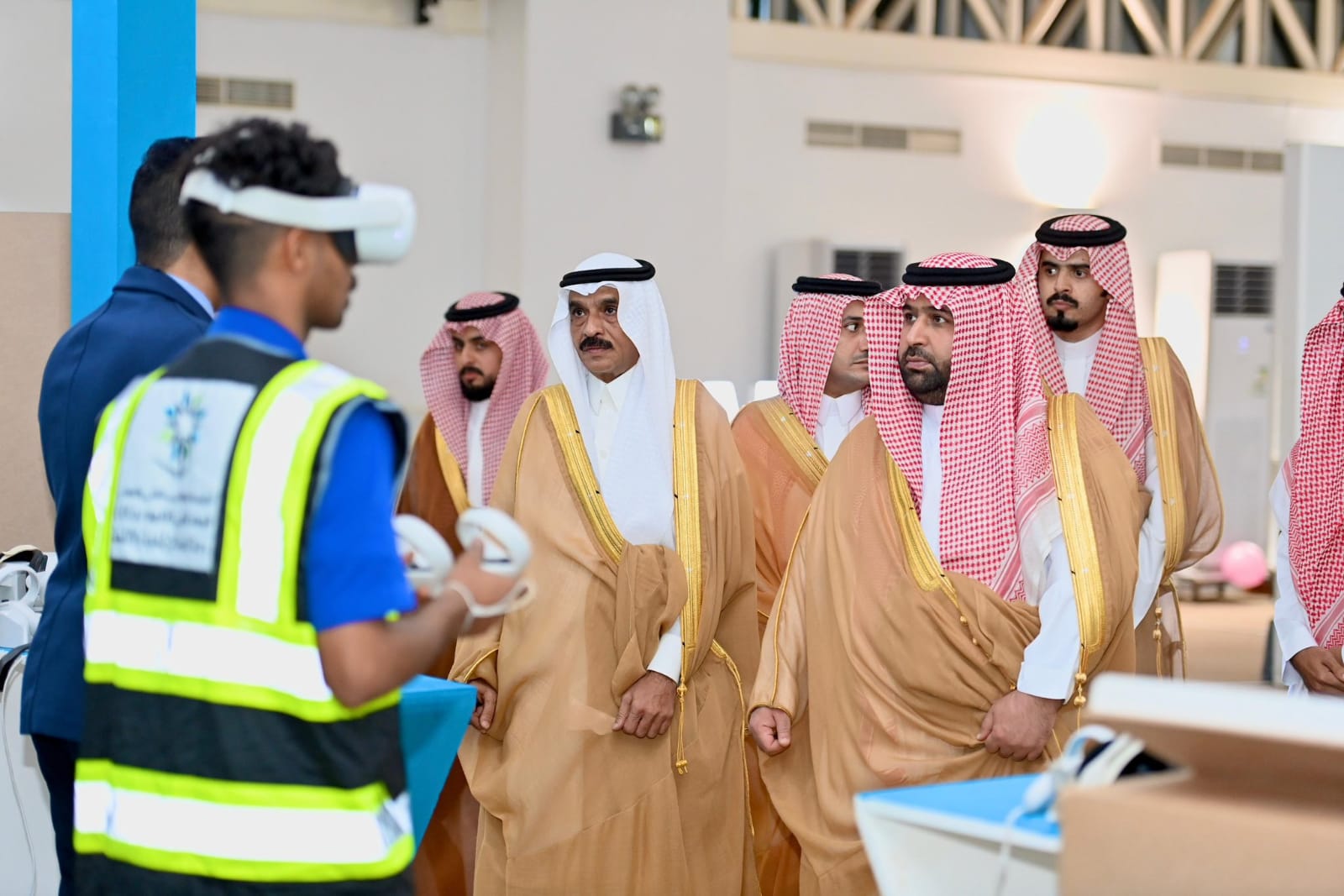 ولدى وصوله تجول بالمعرض في نسخته الثانية مستمعاً لشرح مفصل من مدير الإدارة العامة للتدريب التقني والمهني بالمنطقة المهندس علي بن أحمد مريع، عما يضمه المعرض من أركان تشمل :