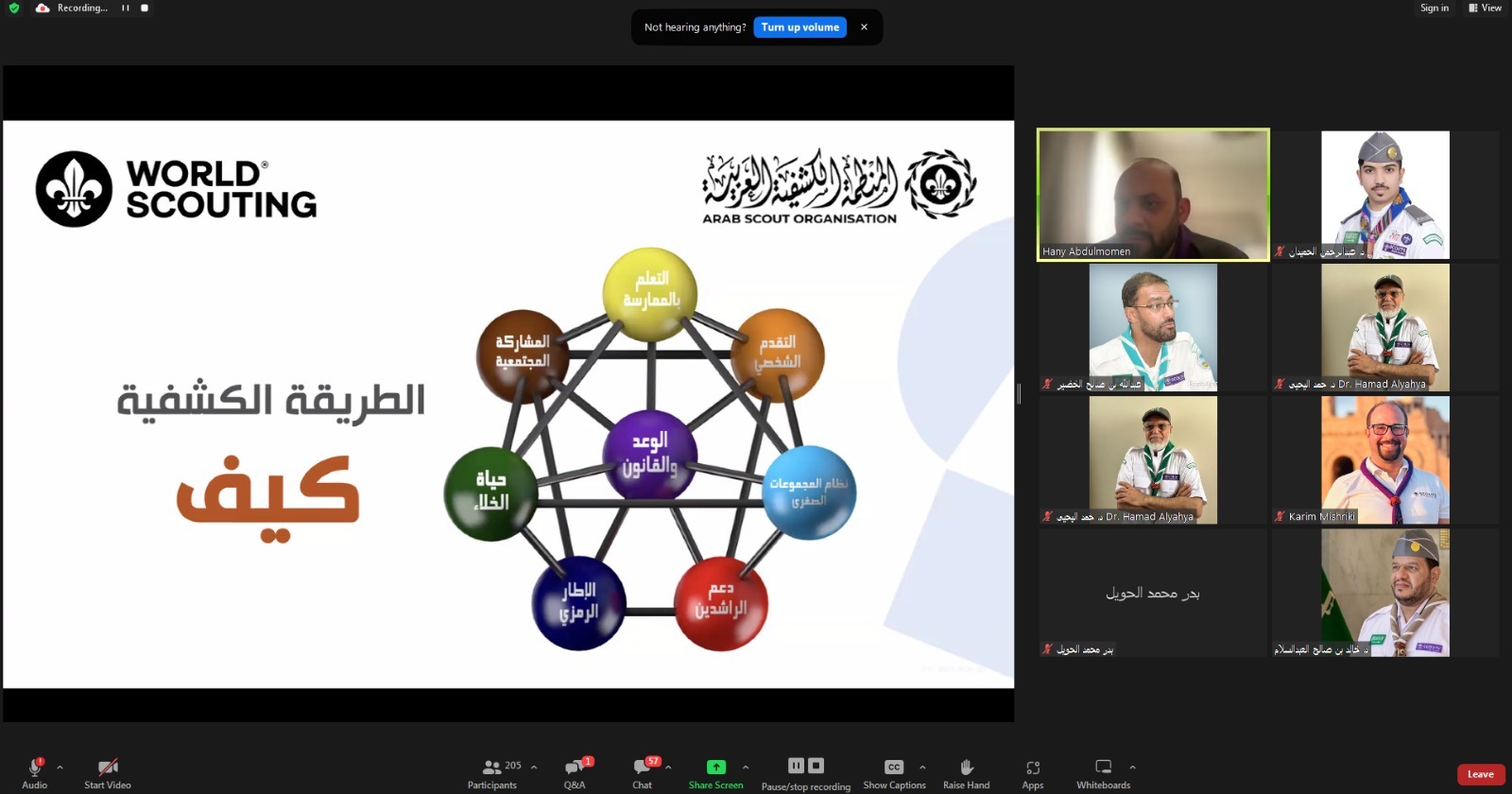 عقدت جمعية الكشافة العربية السعودية، اليوم ندوة كشفية (عبر الاتصال المرئي) بعنوان (الاتجاهات التربوية الحديثة للطريقة الكشفية) في إطار حرص الجمعية تعريف المشرفين التربويين للنشاط الكشفي والمفوضين الكشفيين ورواد عشائر الجوالة في مختلف قطاعاتها بمناطق ومحافظات المملكة على الاتجاهات التربوية الحديثة في مجال الطريقة الكشفية، شارك فيها عدداً من الخبراء الكشفيين من داخل وخارج المملكة.