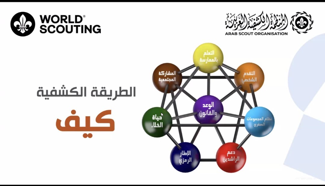 بدوره تحدث مدير التربية وتنمية القدرات بالإقليم الكشفي العربي القائد الكشفي كريم عادل مشرقي عن عناصر الطريقة الكشفية واهميتها في البرنامج الكشفي.