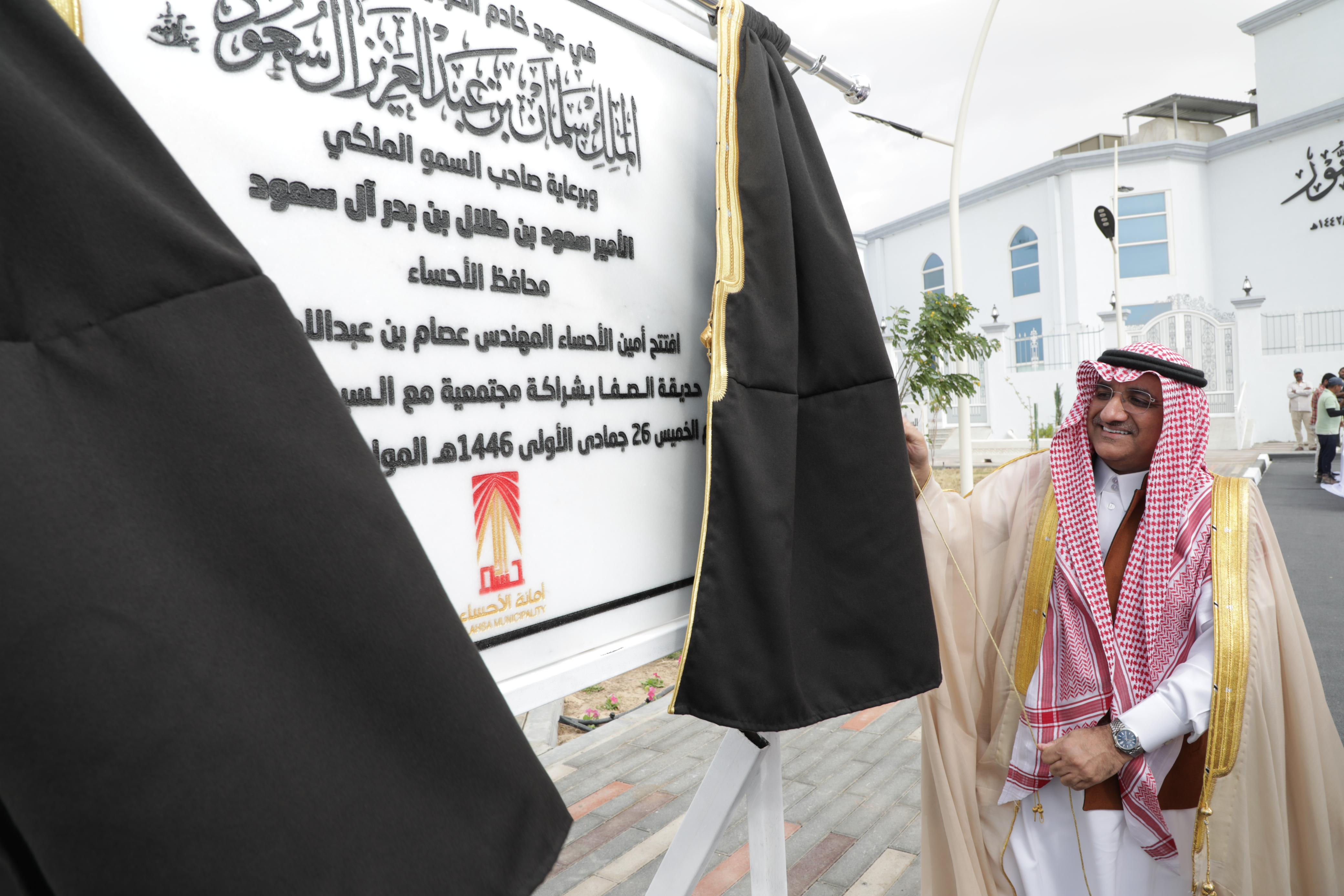 افتتح أمين الأحساء المهندس عصام بن عبداللطيف الملا اليوم الخميس 28 نوفمبر حديقة الصفا في نطاق مدينة العيون ، على مساحة 2500 متر مربع ، وذلك بشراكة مجتمعية مع المواطن السيد هادي السيد ناصر السلمان .