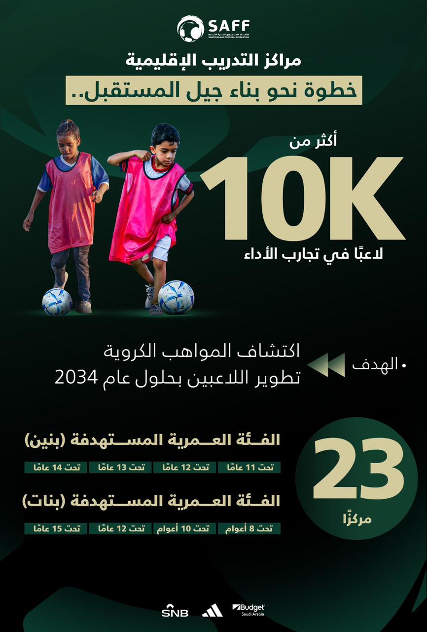 ويعمل الاتحاد السعودي على تنفيذ برامج جديدة لاكتشاف المواهب في كل مركز تدريب إقليمي بمعدل برنامجين كل شهر وذلك بالتنسيق مع وزارة التعليم لإتاحة الفرصة لأكبر عددٍ من اللاعبين على مستوى المملكة للمشاركة في البرامج سعيًا لتجربة ما يقارب 34 ألف لاعب ممن تترواح أعمارهم من 6 إلى 9 سنوات.
