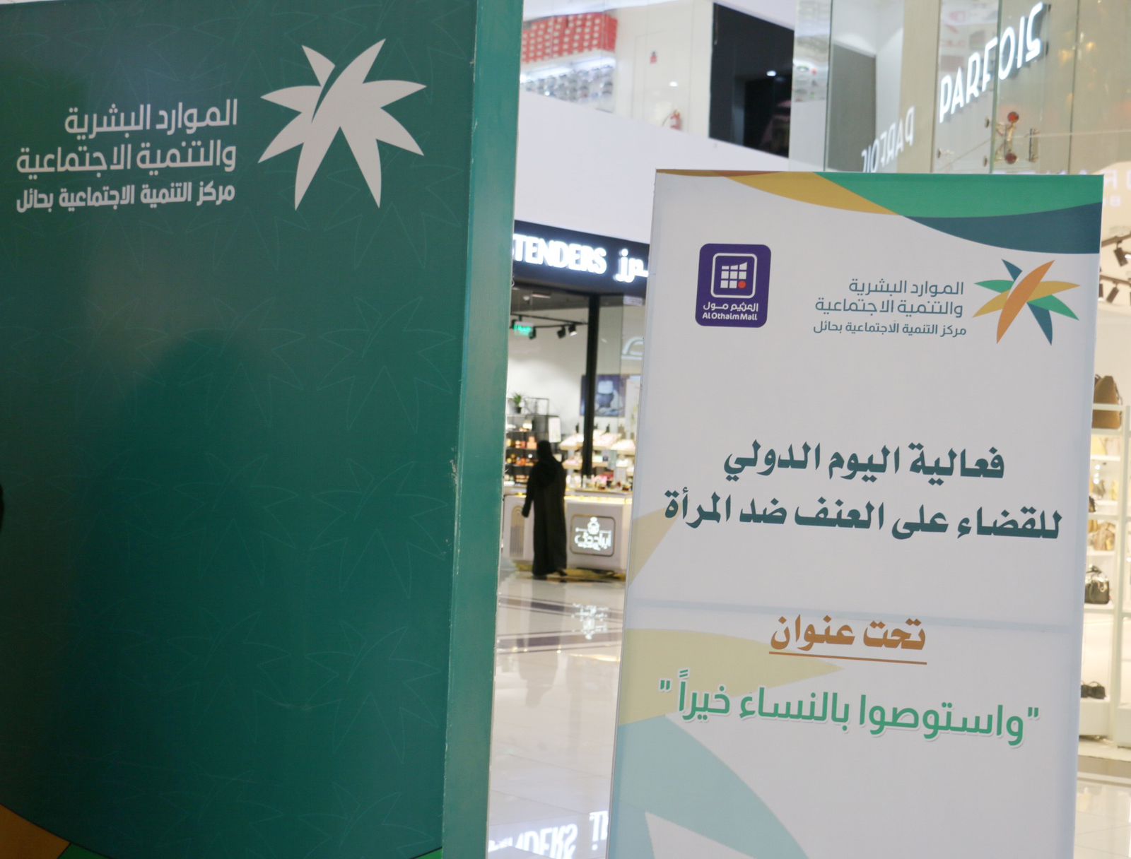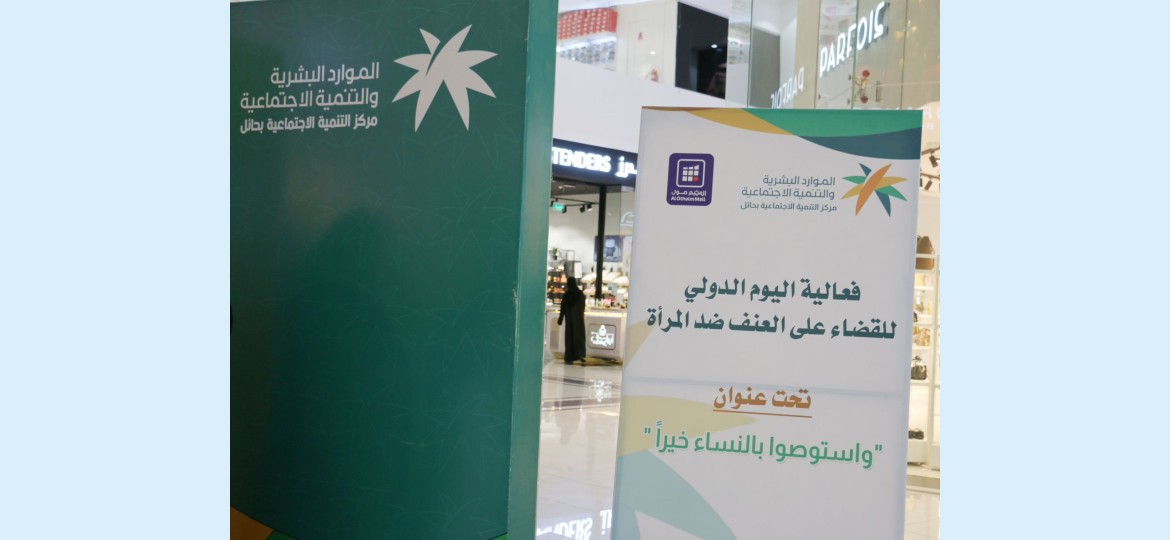 فعّل مركز التنمية الاجتماعية بمنطقة حائل وبحضور مساعدي المدير العام بفرع وزارة الموارد البشرية والتنمية الاجتماعية بمنطقة حائل لقطاعي العمل والتنمية ياسر الدوش وأحمد الزامل “ حملة اليوم الدولي للقضاء على العنف ضد المرأة” تحت عنوان "واستوصوا بالنساء خيرا".