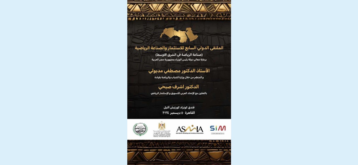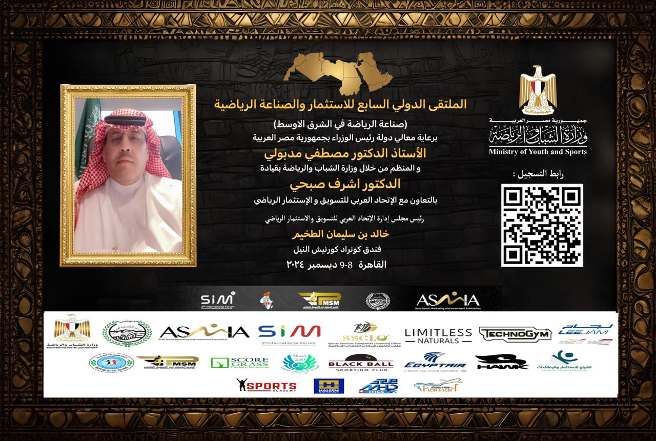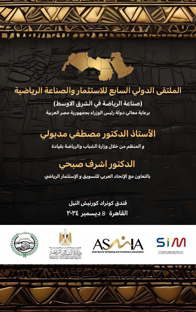 فى اطار الاستعداد لاستضافة  مصر  للنسخة السابعة من الملتقى الدولي للاستثمار والصناعة الرياضية ولأول مرة يكون هذا الحدث برعاية دولة رئيس مجلس وزراء  مصر  الأستاذ الدكتور مصطفى مدبولي حيث ينظمة الاتحاد العربي للتسويق والاستثمار الرياضى للعام السابع على التوالى بالتعاون مع وزارة الشباب والرياضة المصرية بمشاركة عشرات الشركات والكيانات والمؤسسات والمصانع العالمية والعربية والمصرية المتخصصة فى مجال الصناعة والتصنيع والتسويق والترويج والاستثمار الرياضى