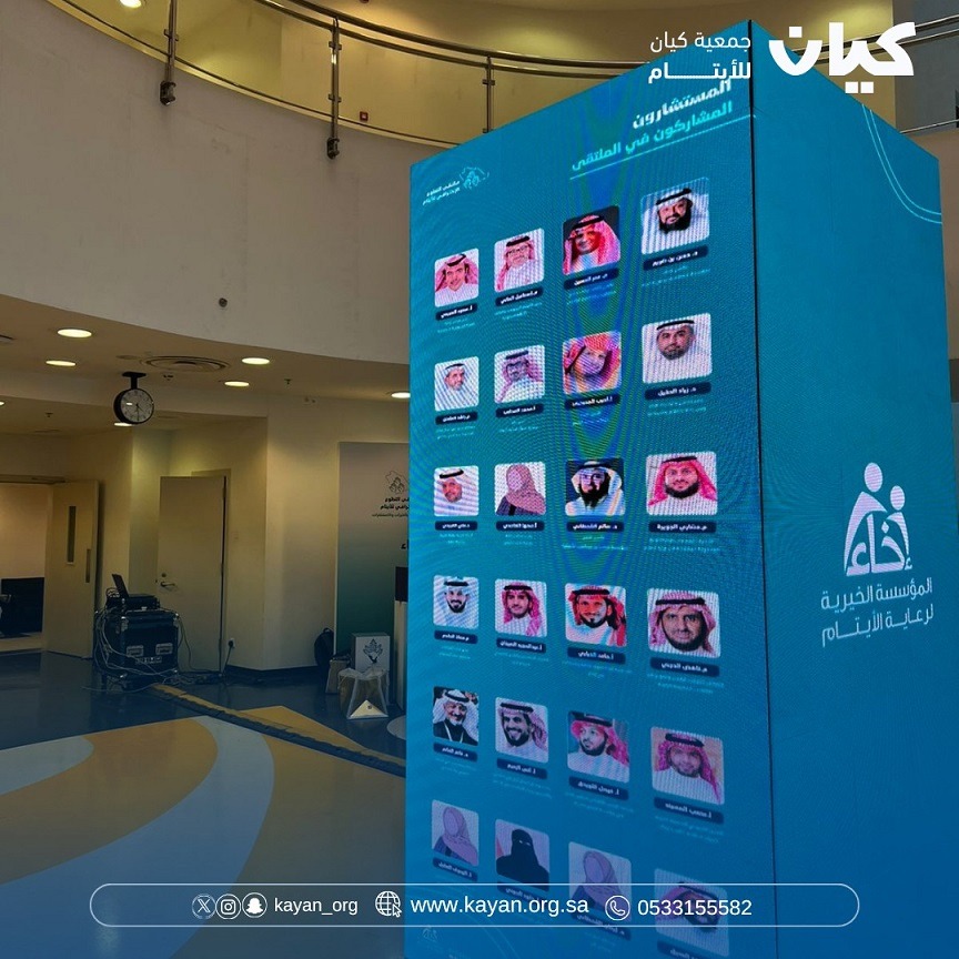 هذا وفـي إطـار تعزيز العمـل التطوعي الاحترافي وتمكين الأيتام ودمجهـم في المجتمع أتاح الملتقى فرصة التواصـل للأيتام مع نخبـة من المستشـارين ومنهم الأستاذة سمها الغامدي رئيس مجلس إدارة جمعية كيان للأيتام التي قالت: