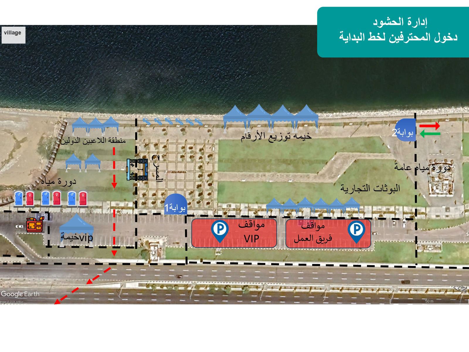 تتضمن الخطة وضع آليات متكاملة لإدارة الحشود، بدءًا من تنظيم دخول وخروج المتسابقين من القرية إلى خط البداية، مرورًا بمنع التكدس أمام خط النهاية. وتم تخصيص فريق أمني لتنظيم حركة الحشود، إضافة إلى تفعيل خطة طوارئ تتضمن توفير 10 سيارات إسعاف وفرق طبية موزعة على نقاط استراتيجية لضمان التعامل السريع مع أي حالات طارئة.