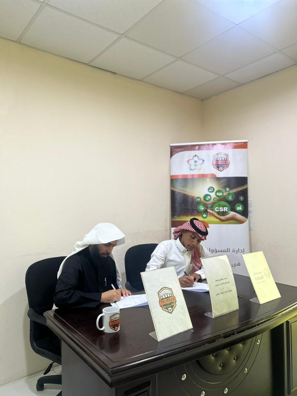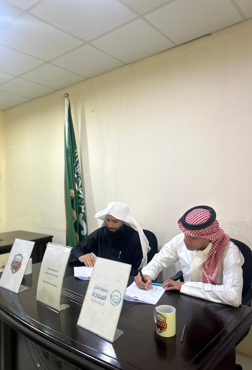 مثّل نادي الثقبة رئيس مجلس الإدارة أ.الوليد الصياح، ومثّل جمعية صناع السعادة رئيس مجلس الإدارة د.ياسر آل داشل بحضور أ.علي الخشرمي عضو مجلس إدارة جمعية صناع السعادة ومدير المسؤولية المجتمعية في نادي الثقبة أ.عائشة الناجم وذلك بهدف تعزيز العمل المشترك والأنشطة والمبادرات المجتمعية بين الجهتين.