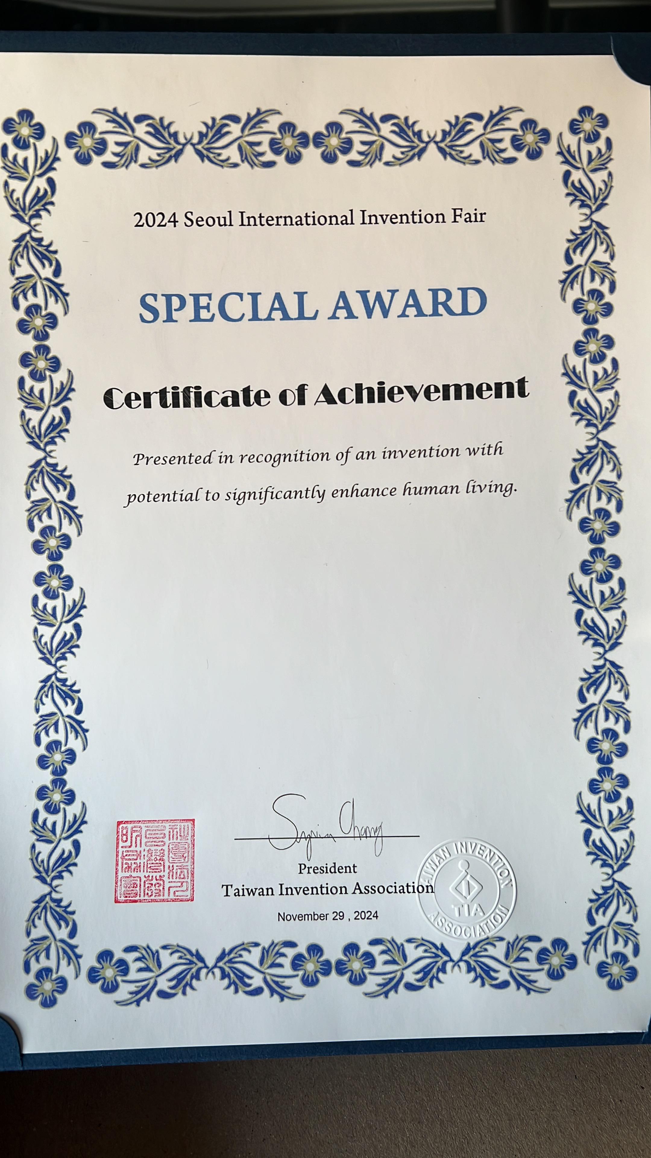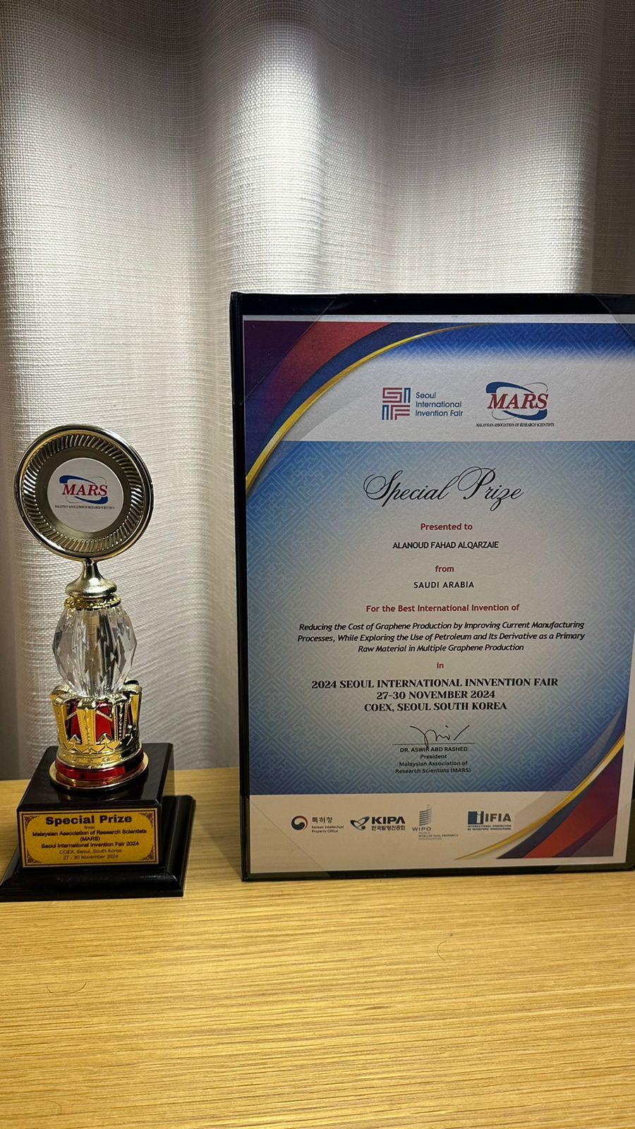 وفازت الطالبة العنود القرزعي بجائزة خاصة مقدمة من الرابطة الماليزية لعلماء الأبحاث، كما حصل بحثها "استخدام النفط كمادة أولية في صناعة القرافين وتحسين وتقليل تكلفة ووقت عمليات الإنتاج) على شهادة أفضل اختراع في معرض سيئول الدولي للاختراعات 2024.
