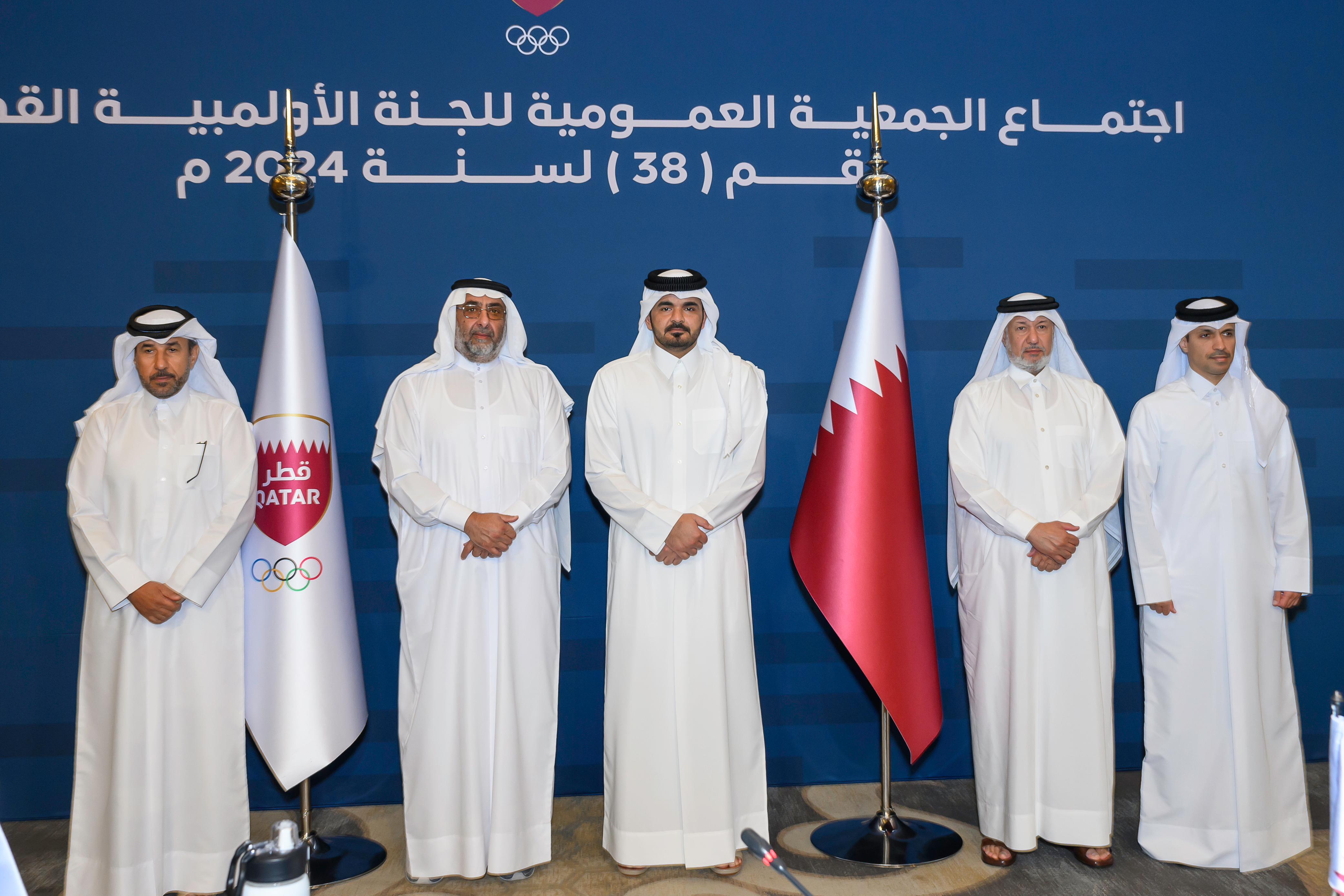 جاء ذلك خلال اجتماع الجمعية العمومية الـ 38 الذي عُقد اليوم في فندق فورسيزون الدوحة، برئاسة سعادة  الشيخ جوعان بن حمد  آل ثاني، وحضور أعضاء مجلس إدارة  اللجنة الأولمبية القطرية  ورؤساء الاتحادات واللجان الرياضية القطرية.