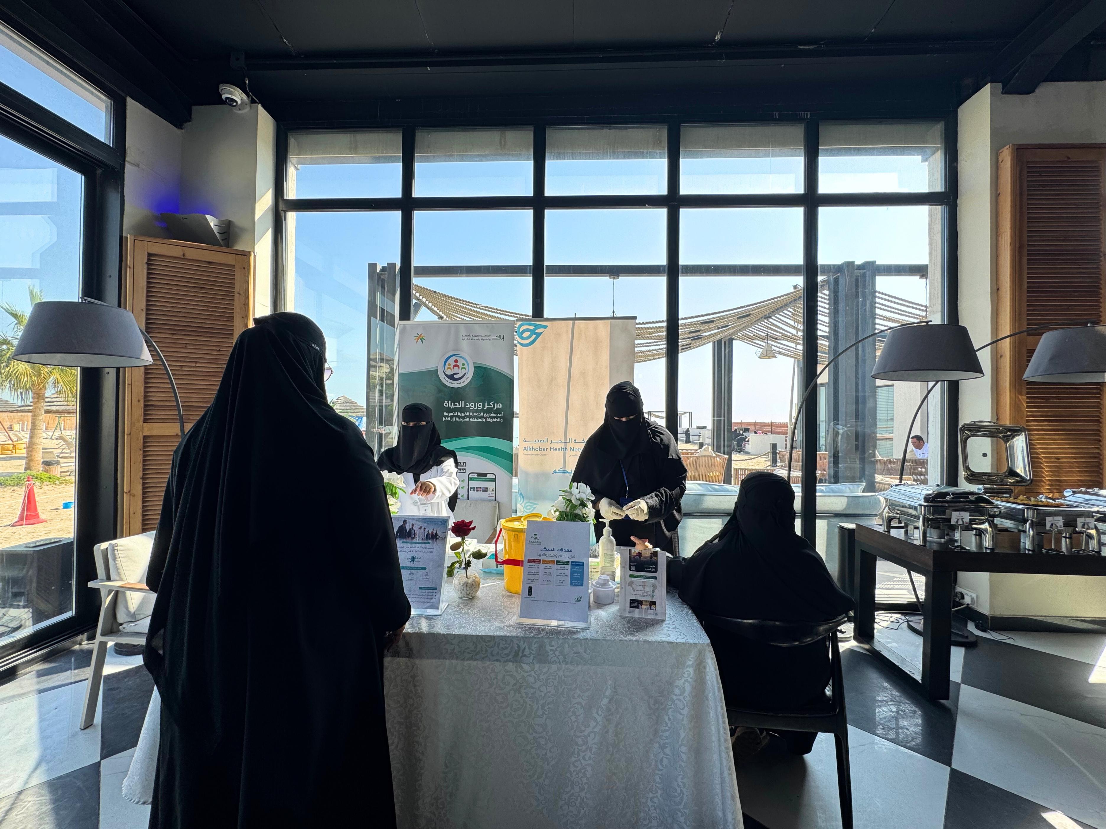 وأشارت إلى مشاركة شبكة الخبر الصحية بإقامة ركن تثقيفي وفحوصات قياس الضغط والسكّر إضافة للقاء مع استشارية الأمراض الجلدية والليزر دكتورة مها بن دايل .