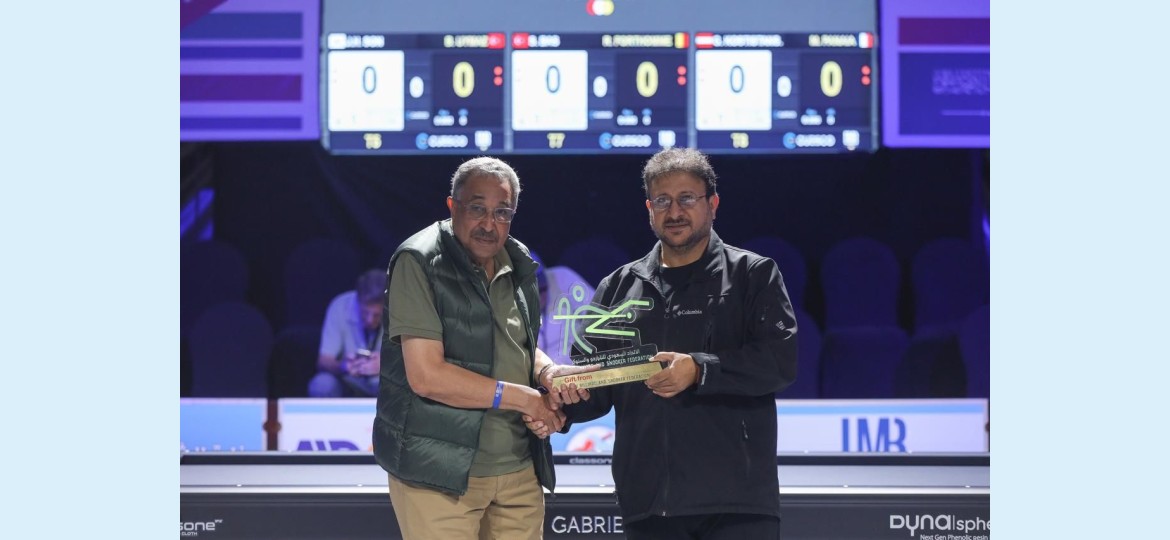 وقدم د. الشمري درع الاتحاد السعودي للبلياردو والسنوكر كهدية تذكارية لرئيس الاتحاد الدولي للبلياردو الفرنسي.