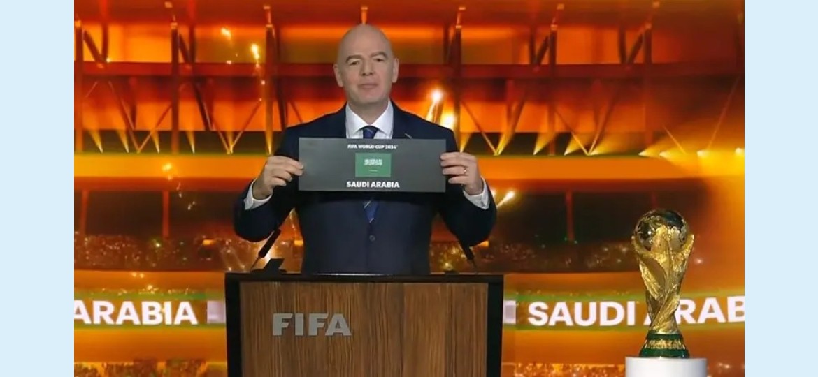 منح الاتحاد الدولي لكرة القدم " فيفا " مساء اليوم المملكة العربية السعودية حق تنظيم كأس العالم 2034 " منفردة " بحصوله على أصوات أكثر من 150 دولة من أعضاء الفيفا الذين التقوا عبر الاتصال المرئي ، بعد ان حصل الملف السعودي للاستضافة على 415 نقطة من قبل الفنيين والمختصين وهو اعلى تقييم يحصل عليه ملف استضافة في تاريخ بطولات كأس العالم، وفي الاجتماع أعلن رئيس الاتحاد الدولي الإيطالي انفانتينو أن النسخة المئوية من البطولة العالمية ستقام مشاركة بين المغرب، اسبانيا والبرتغال عام 1930 .